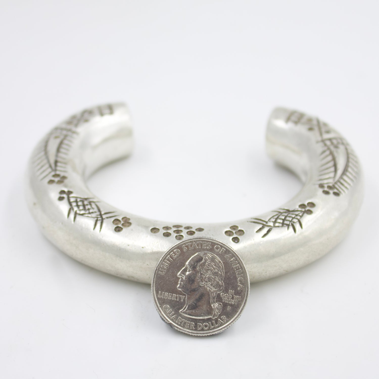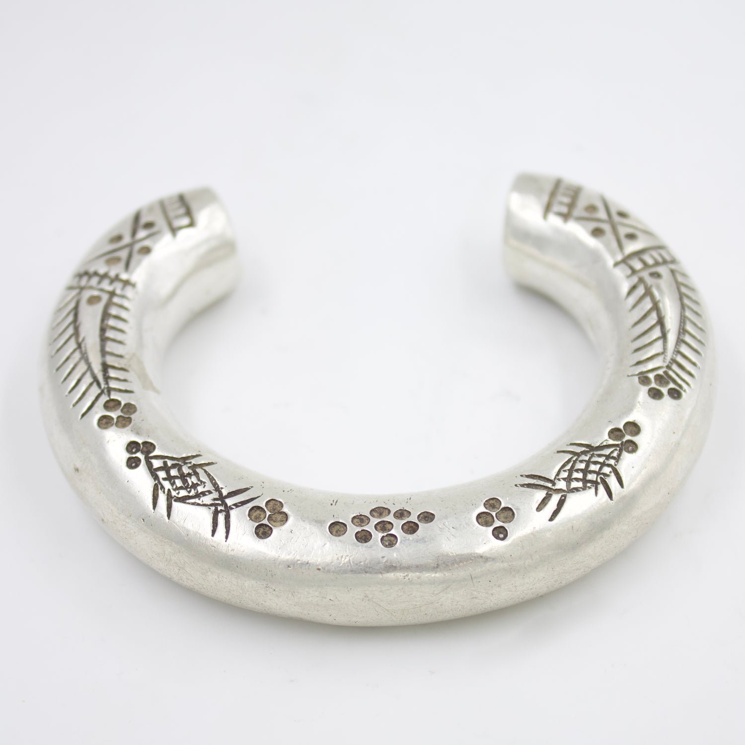 Antique Ethnic Tribal Hand Etched Nomadic Cuff Bracelet in Silver