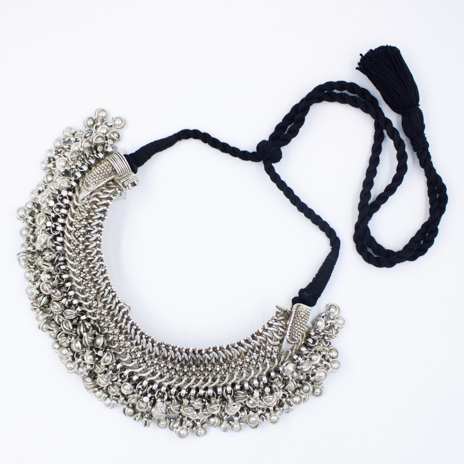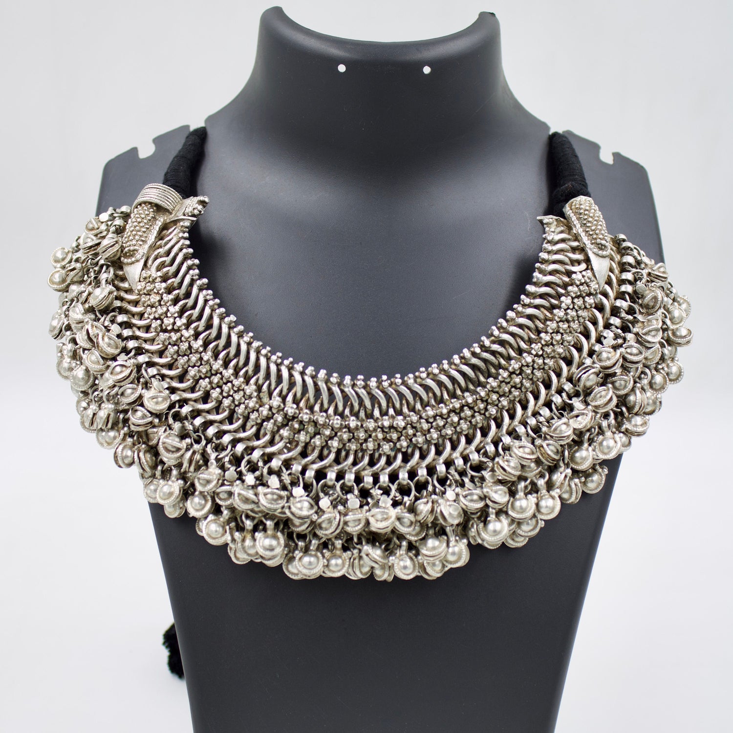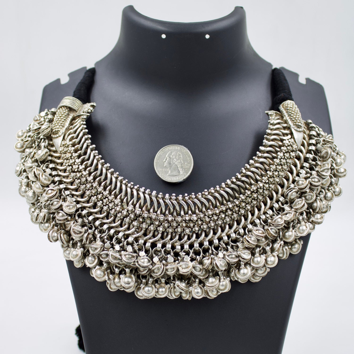 Antique Rajasthani Tribal Ghungroo Statement Choker Necklace in Sterling Silver Collectors Piece Circa 1930