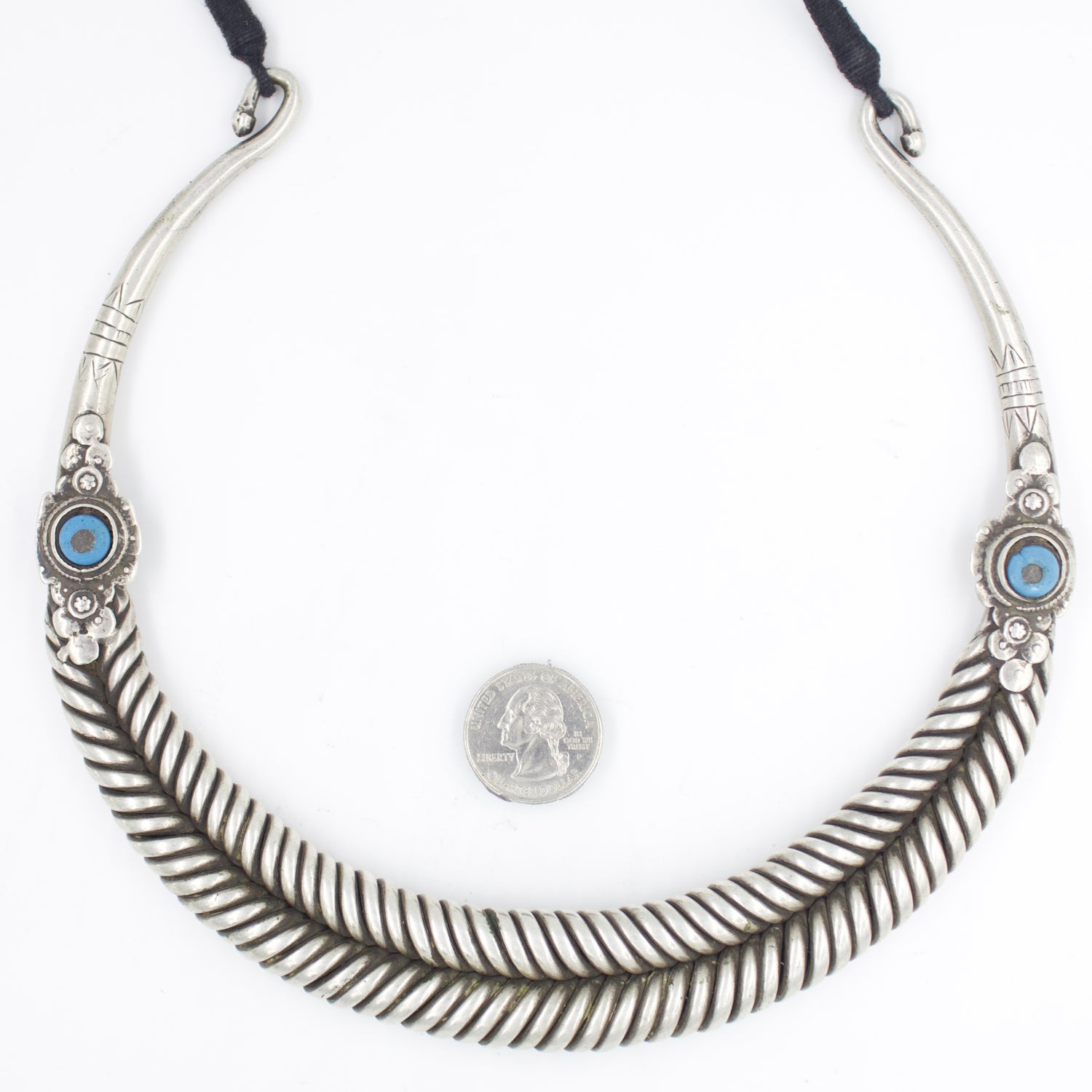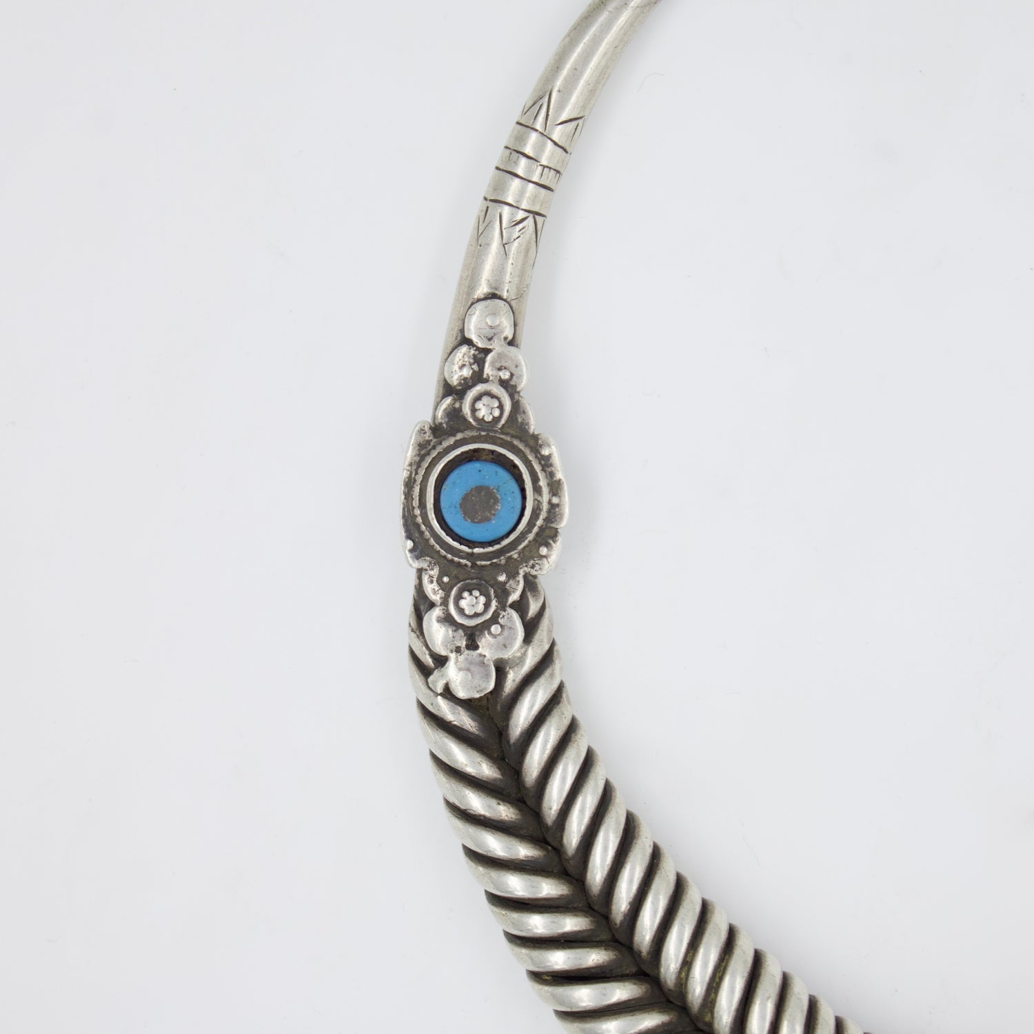 An antique Rajasthani Hasli Necklace sourced from Tribal villages in Rajasthan, India.