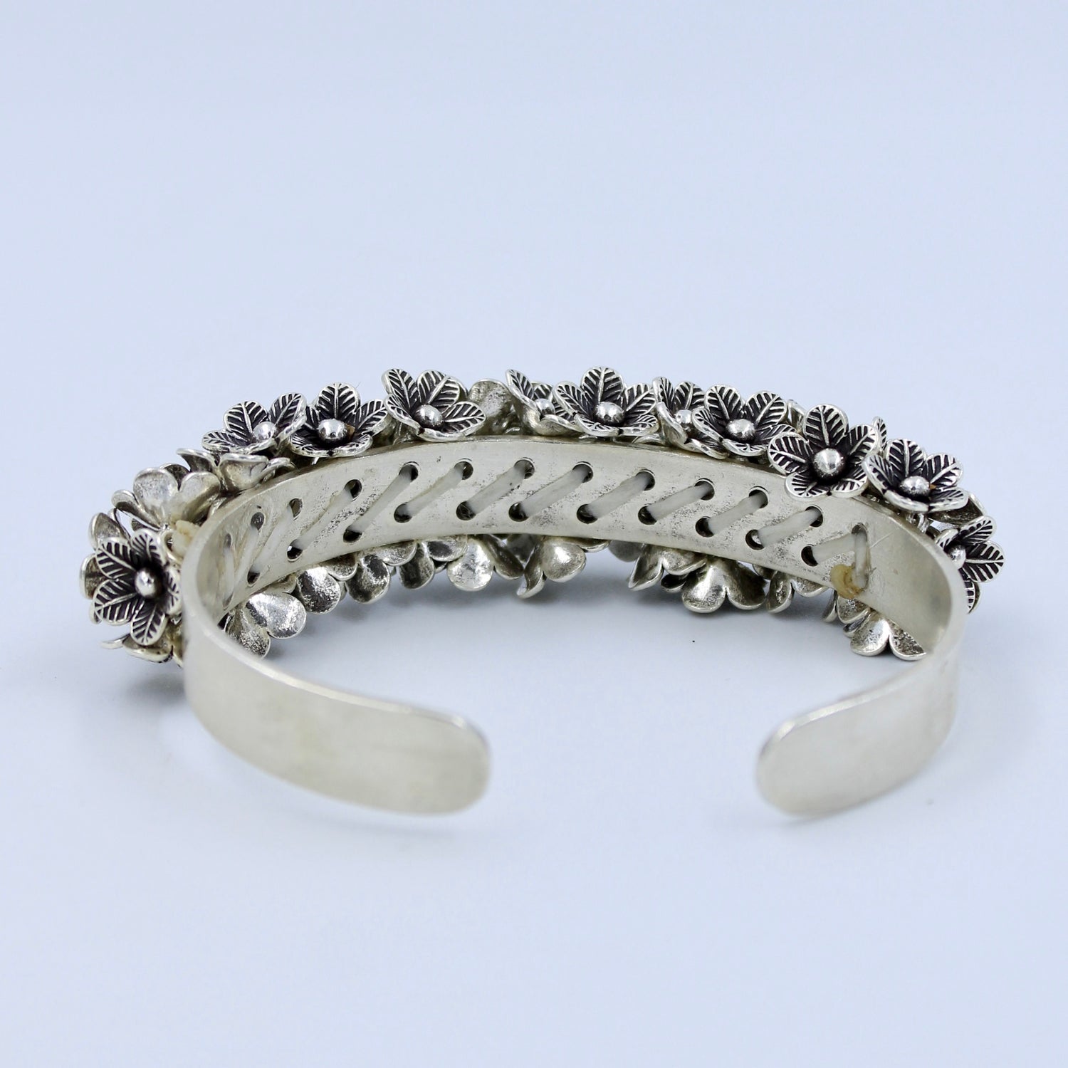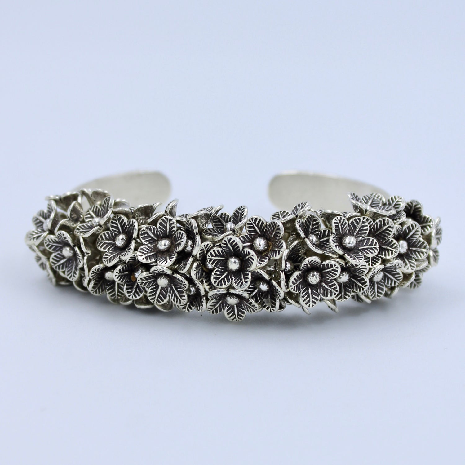 Artistic Handmade Floral Cuff Bracelet in Sterling Silver
