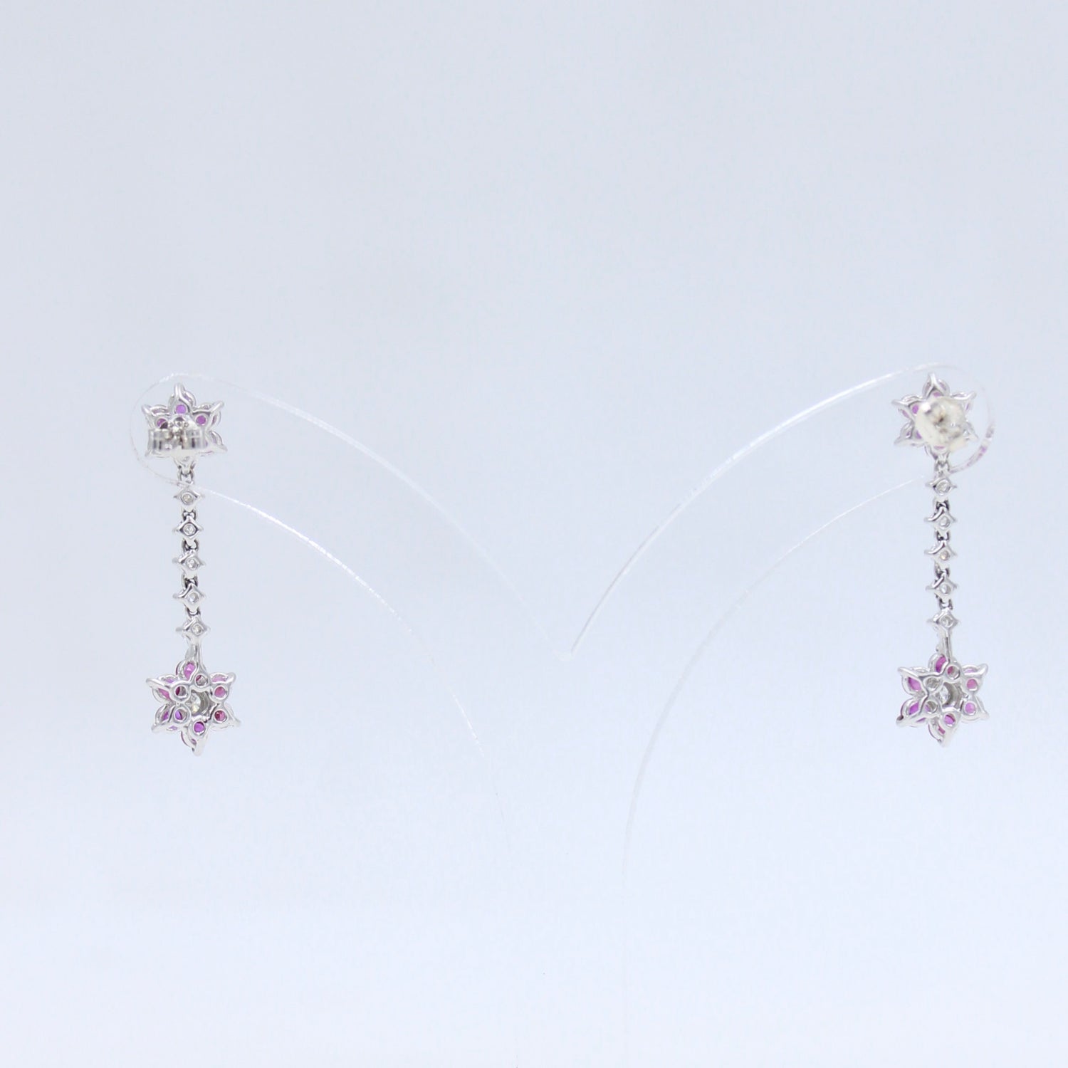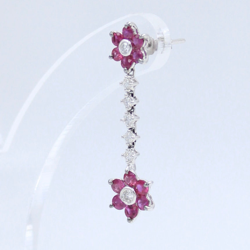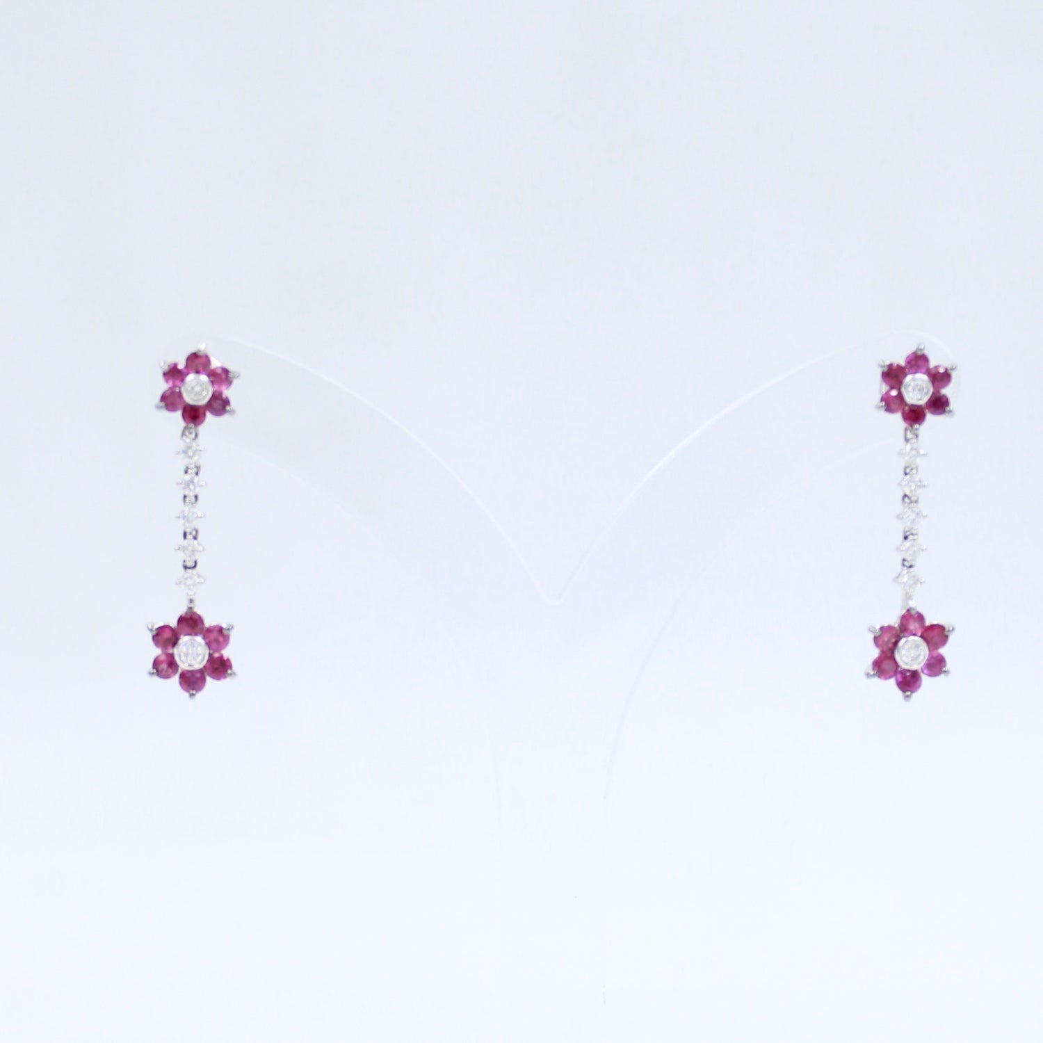 Elegant 2.13 TCW Natural Untreated Ruby & Diamond Floral Drop Earring in 18K White Gold