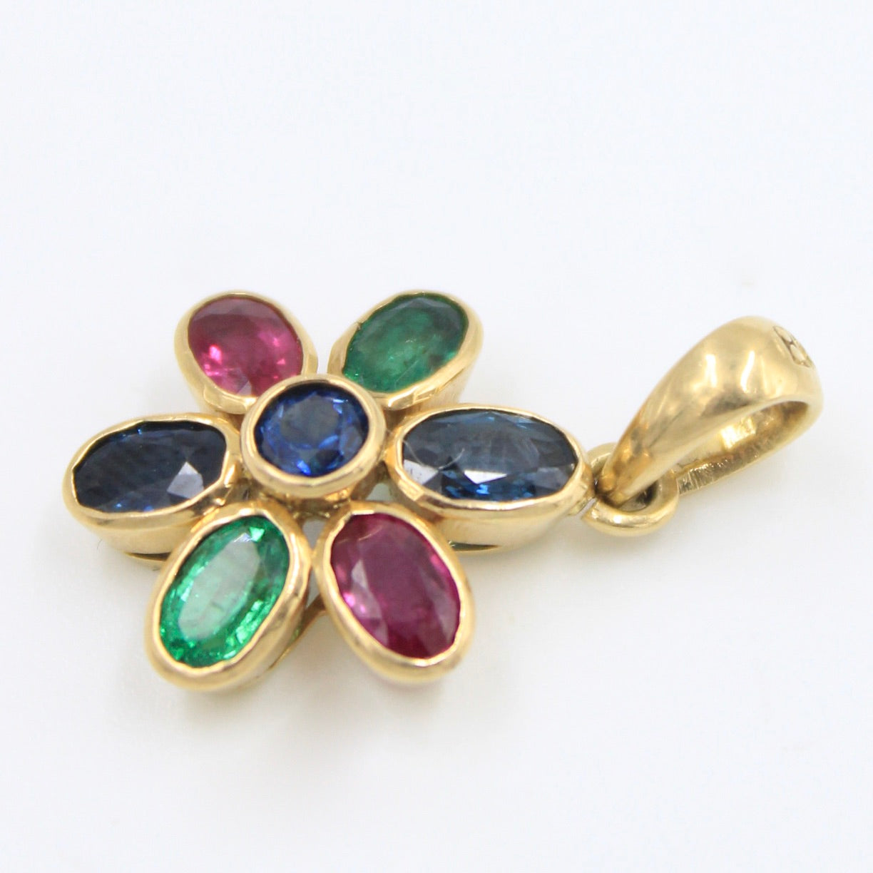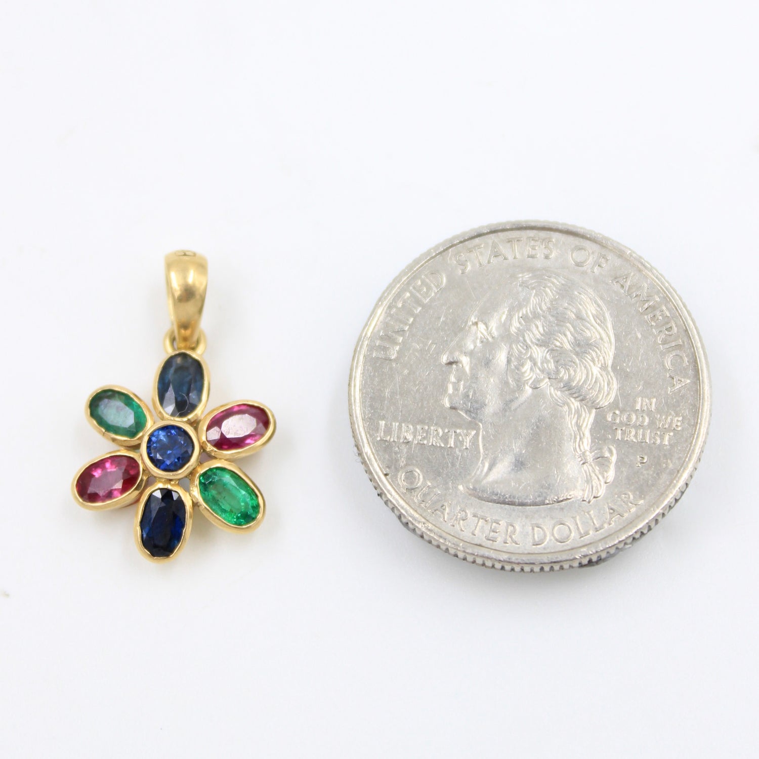Elegant 5.5 TCW Multi Gem Floral Rainbow Pendant in 18K Yellow Gold