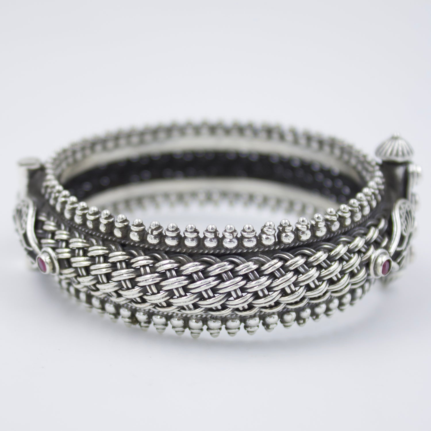 Traditional Handwork called Chatai (silver wire weaving) has been done on the bangles