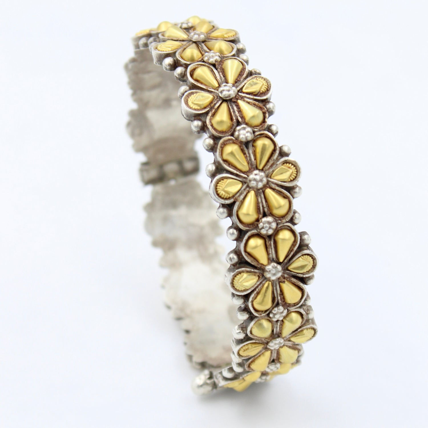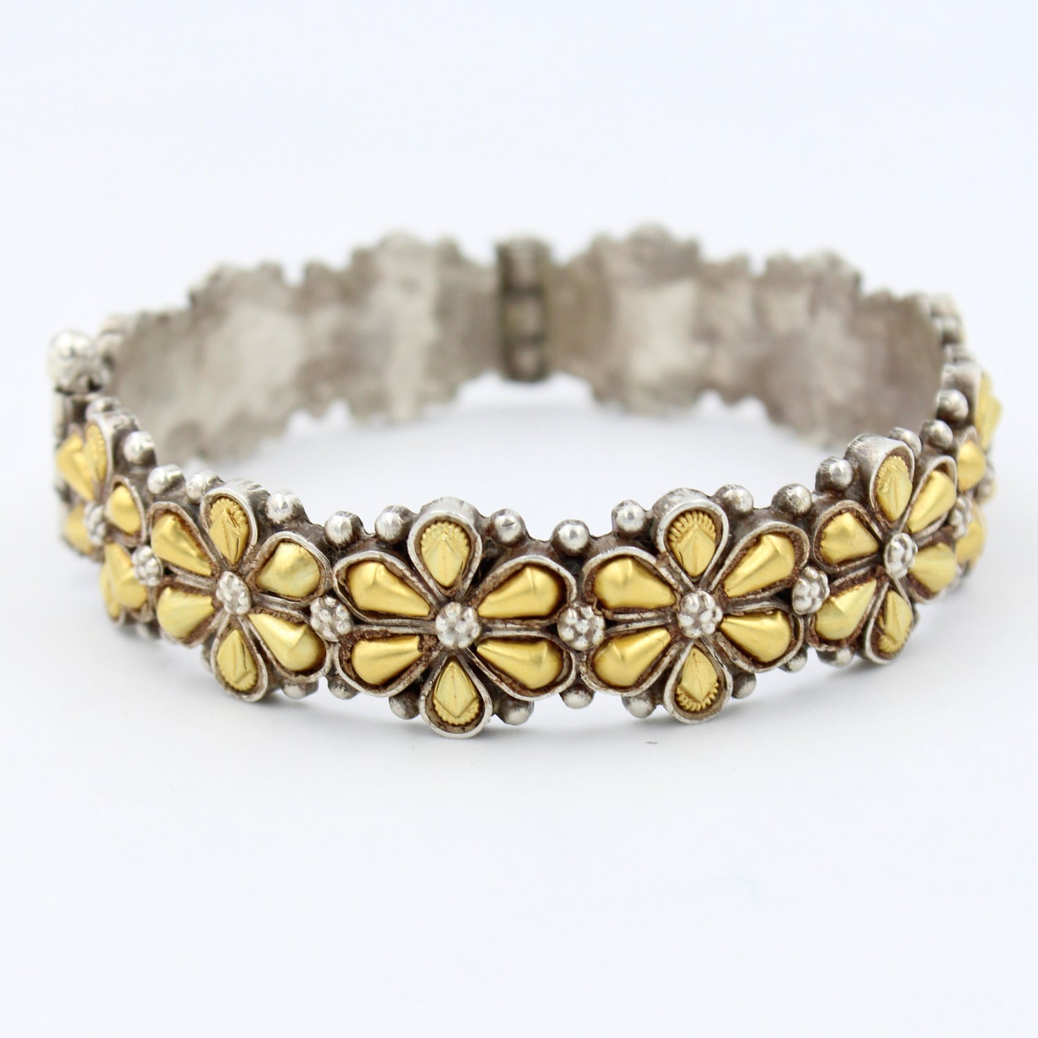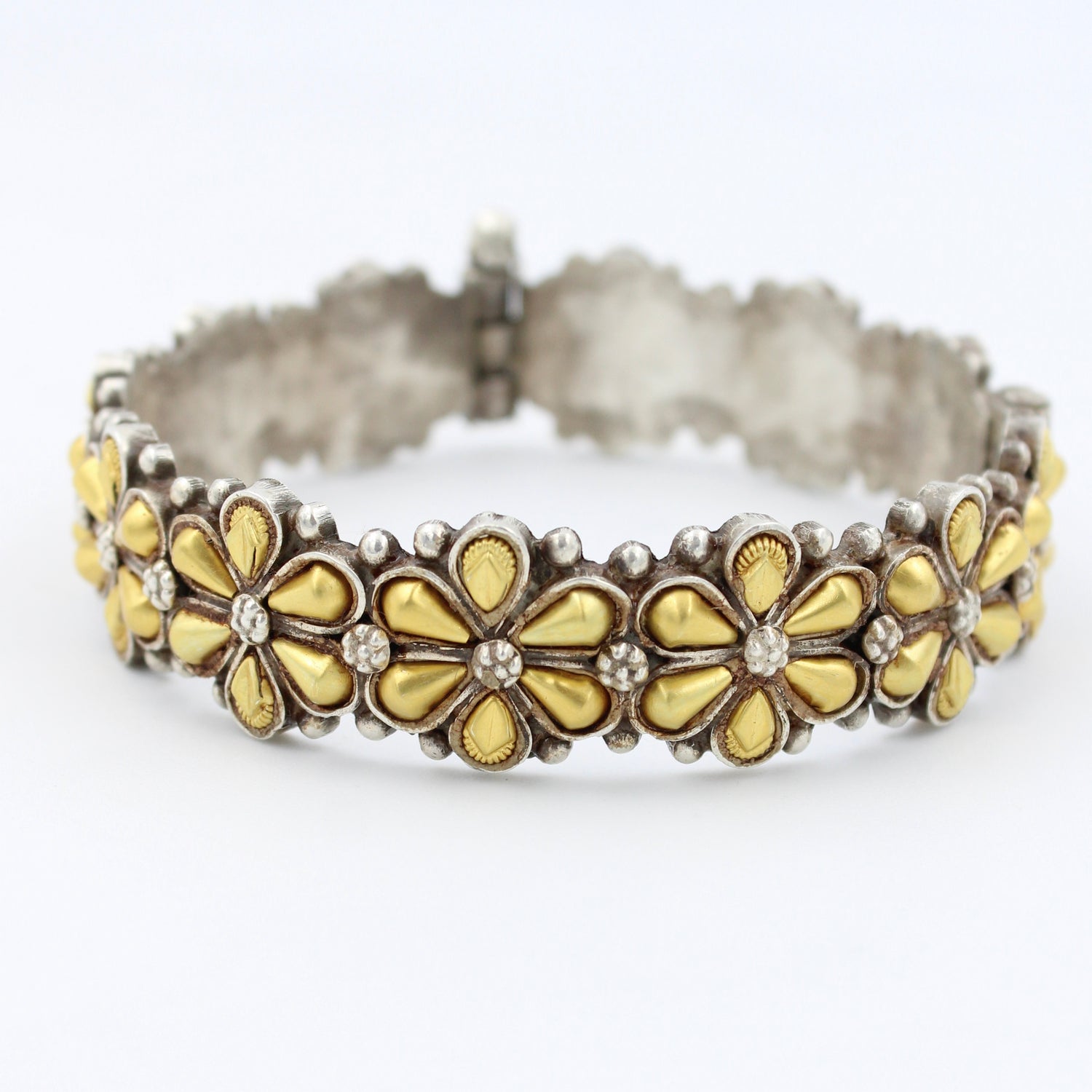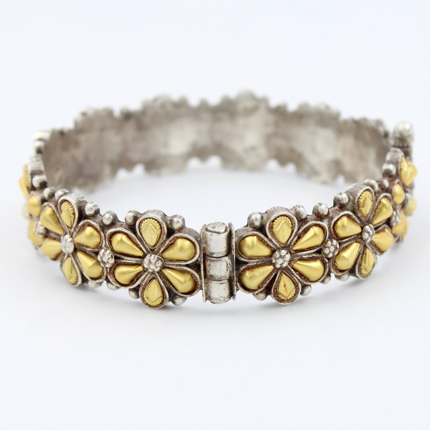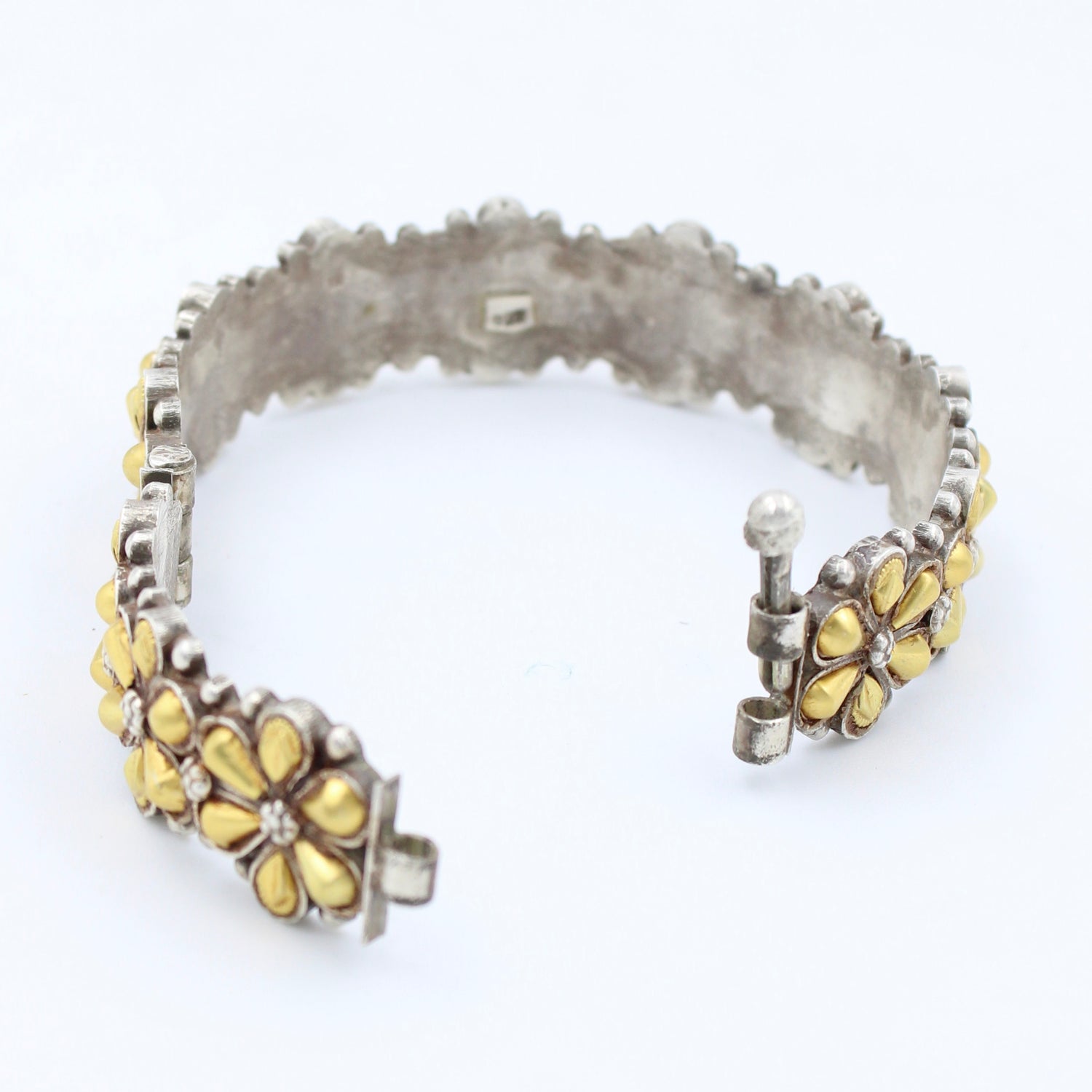 Handmade Barmeri Dual Tone Statement Hinged Bangle Bracelet in Sterling Silver