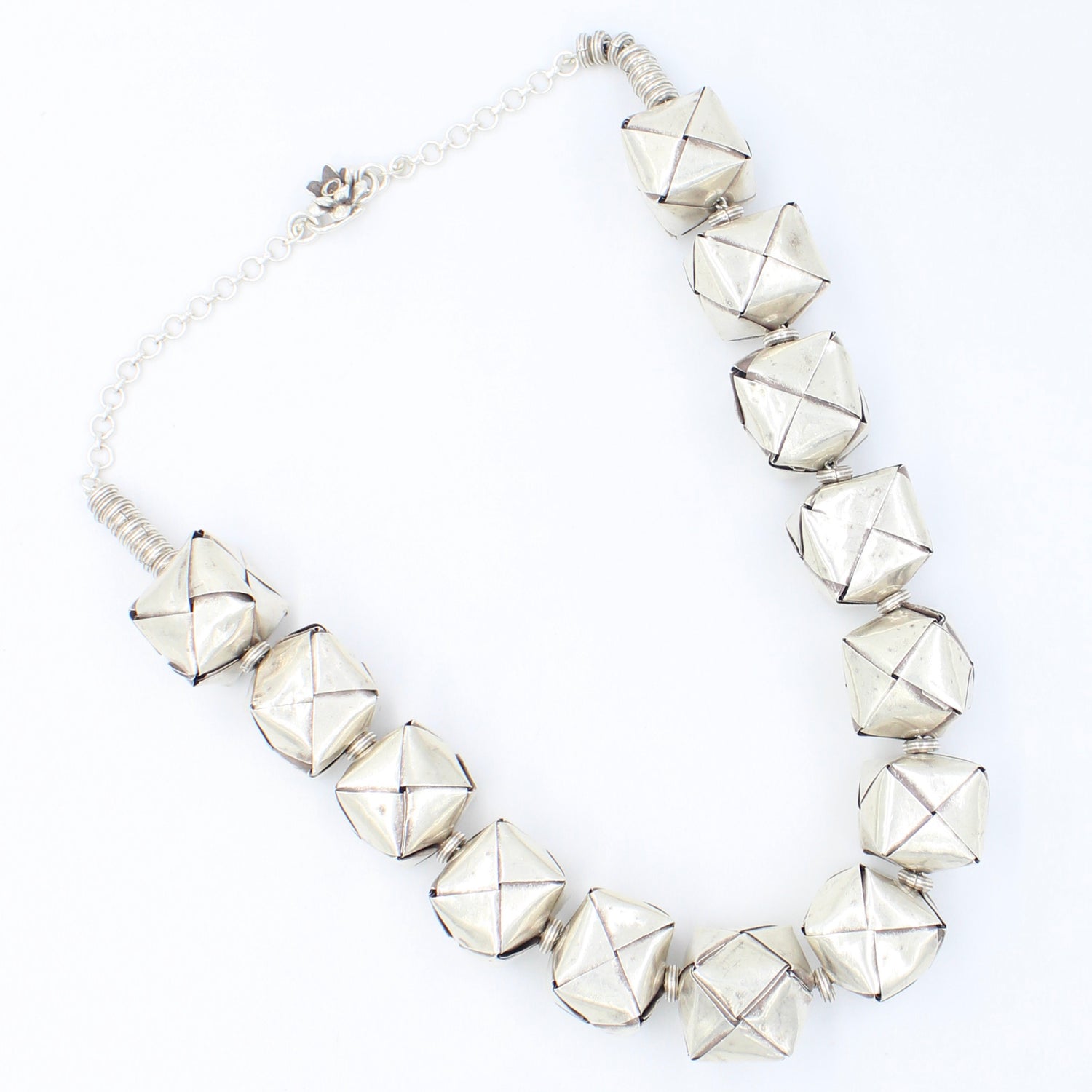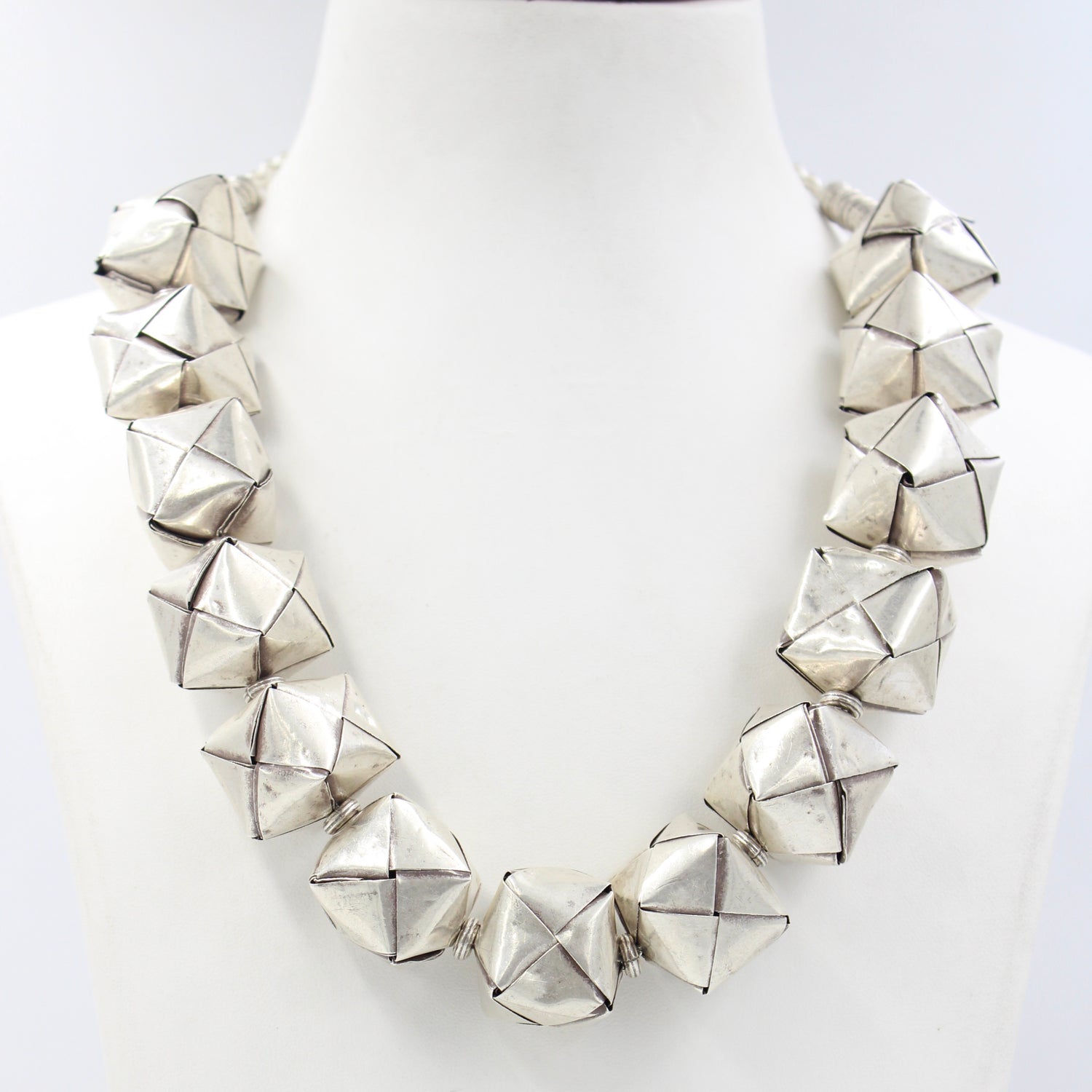 Handmade Indonesian Cubic Ball Beaded Necklace in Sterling Silver
