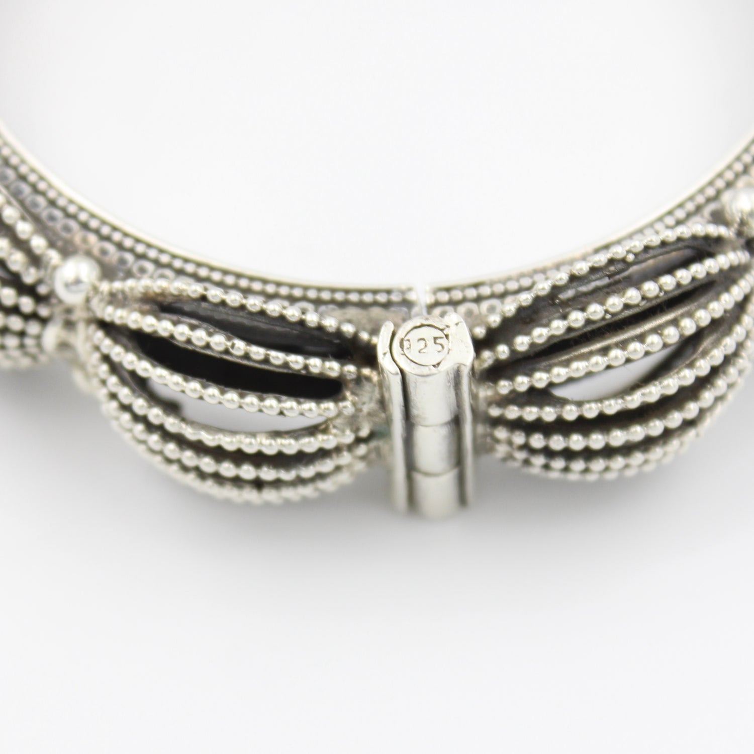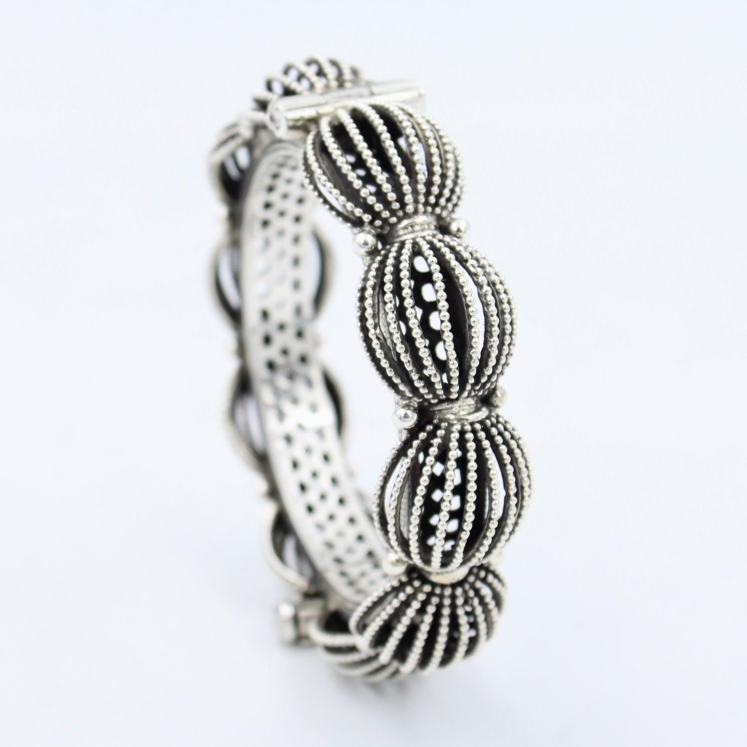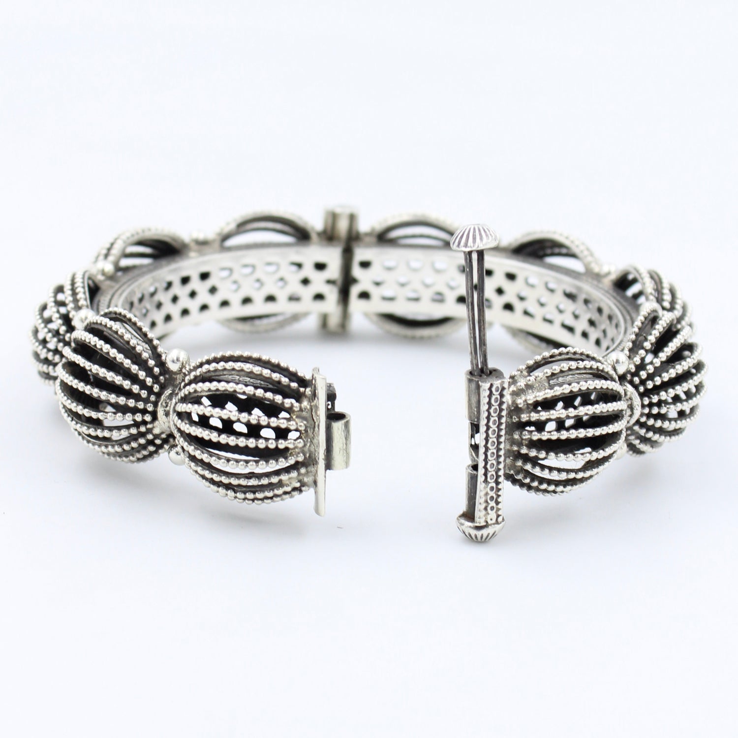 Handmade Mesh Work Hinged Bangle Bracelet in Sterling Silver