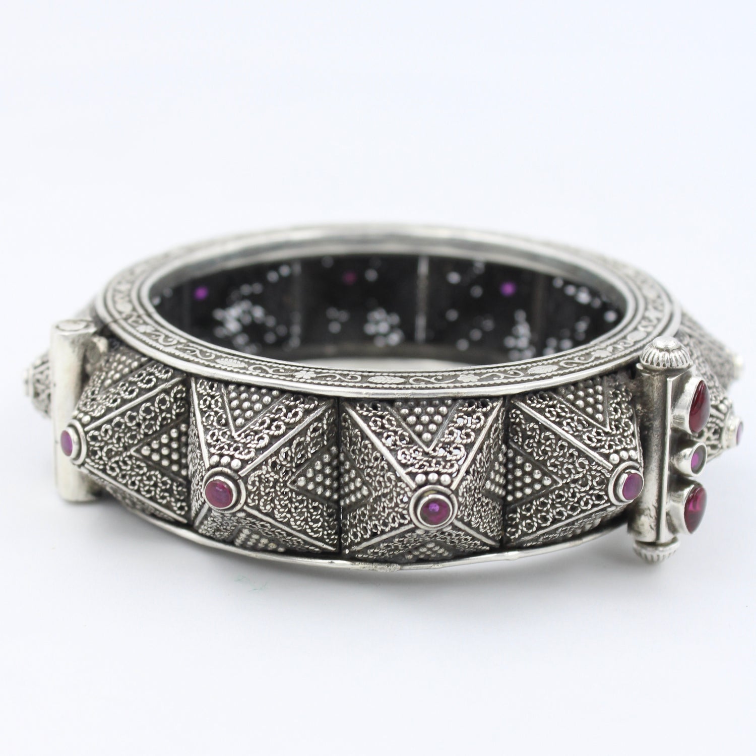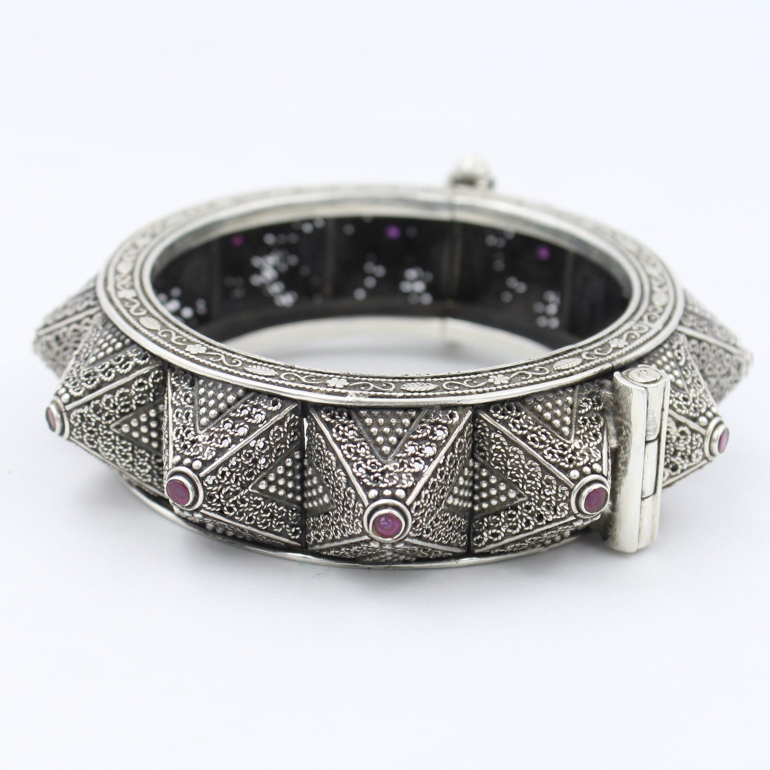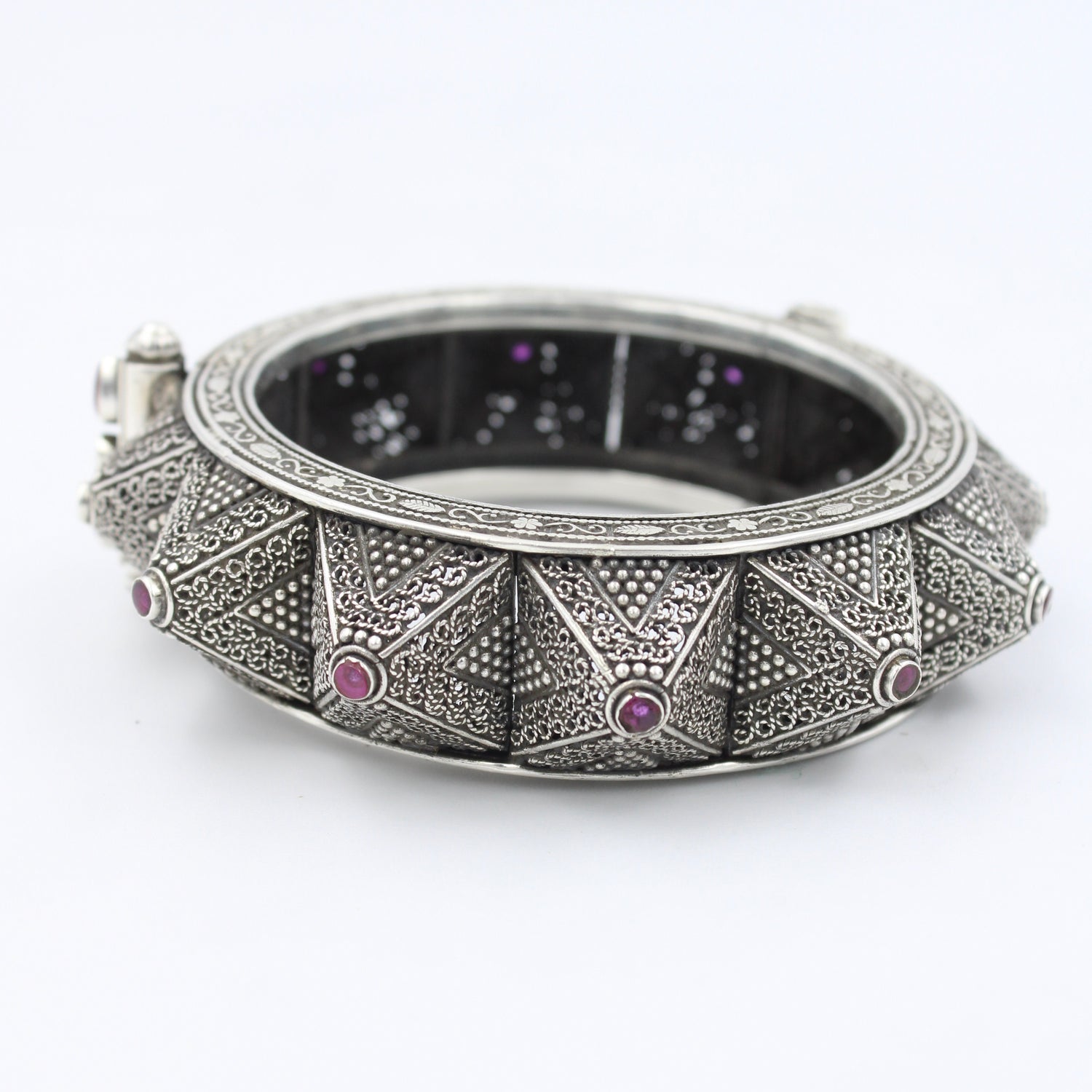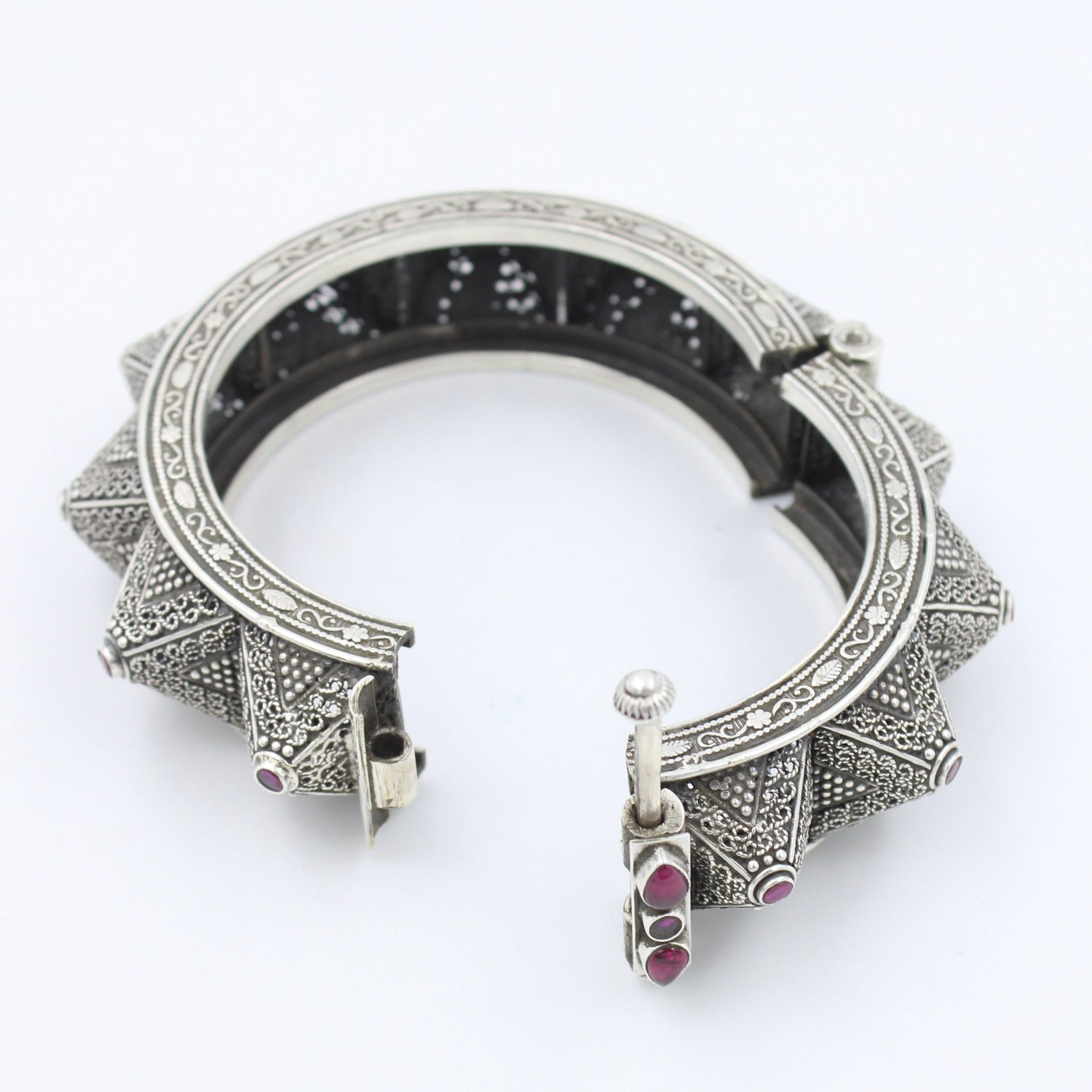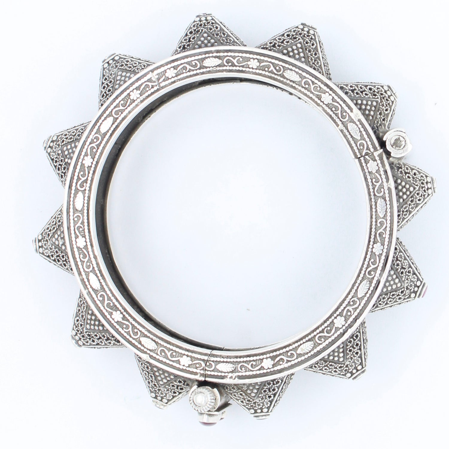 Handmade Pyramid Statement Rhinestone Bangle Bracelet in Sterling Silver