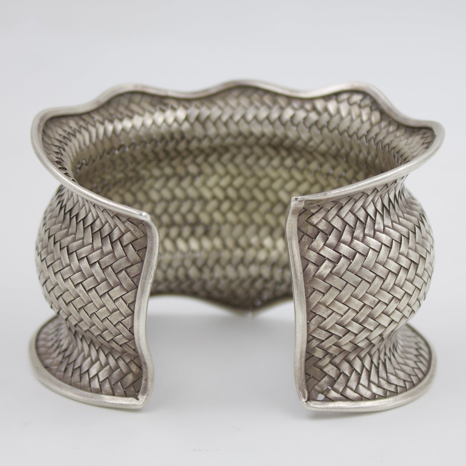 Indonesian Hand-woven Broad Cuff Bracelet in Sterling Silver