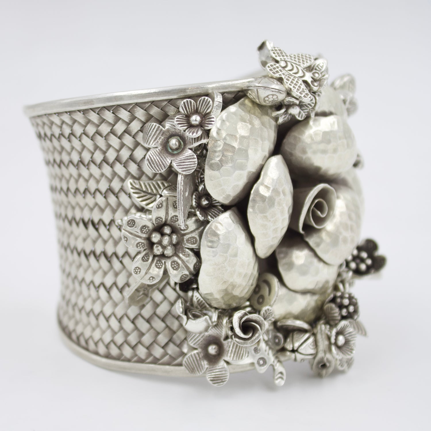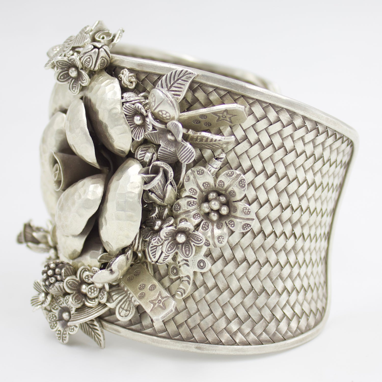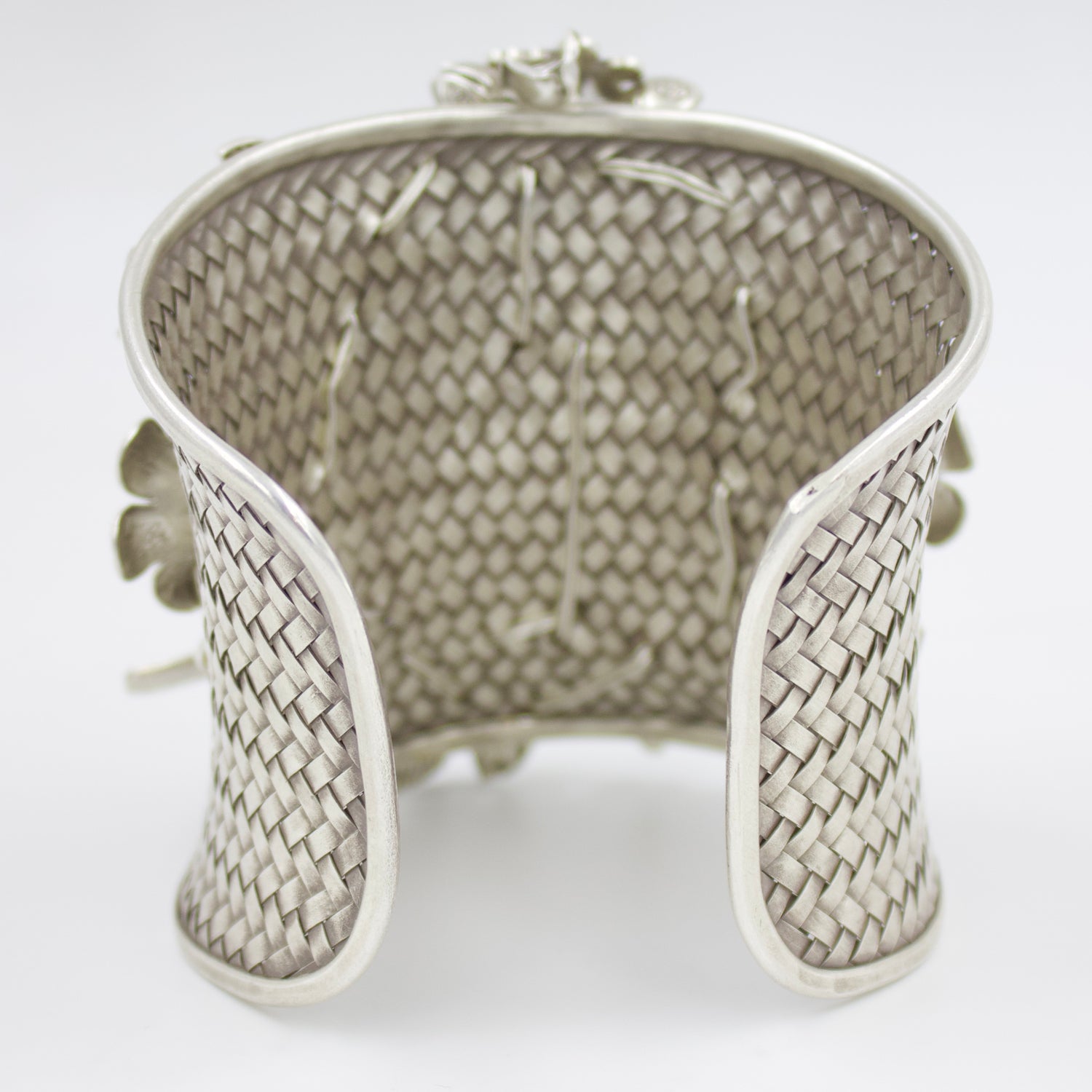 Indonesian Hand-woven Floral Cuff Bracelet in Sterling Silver