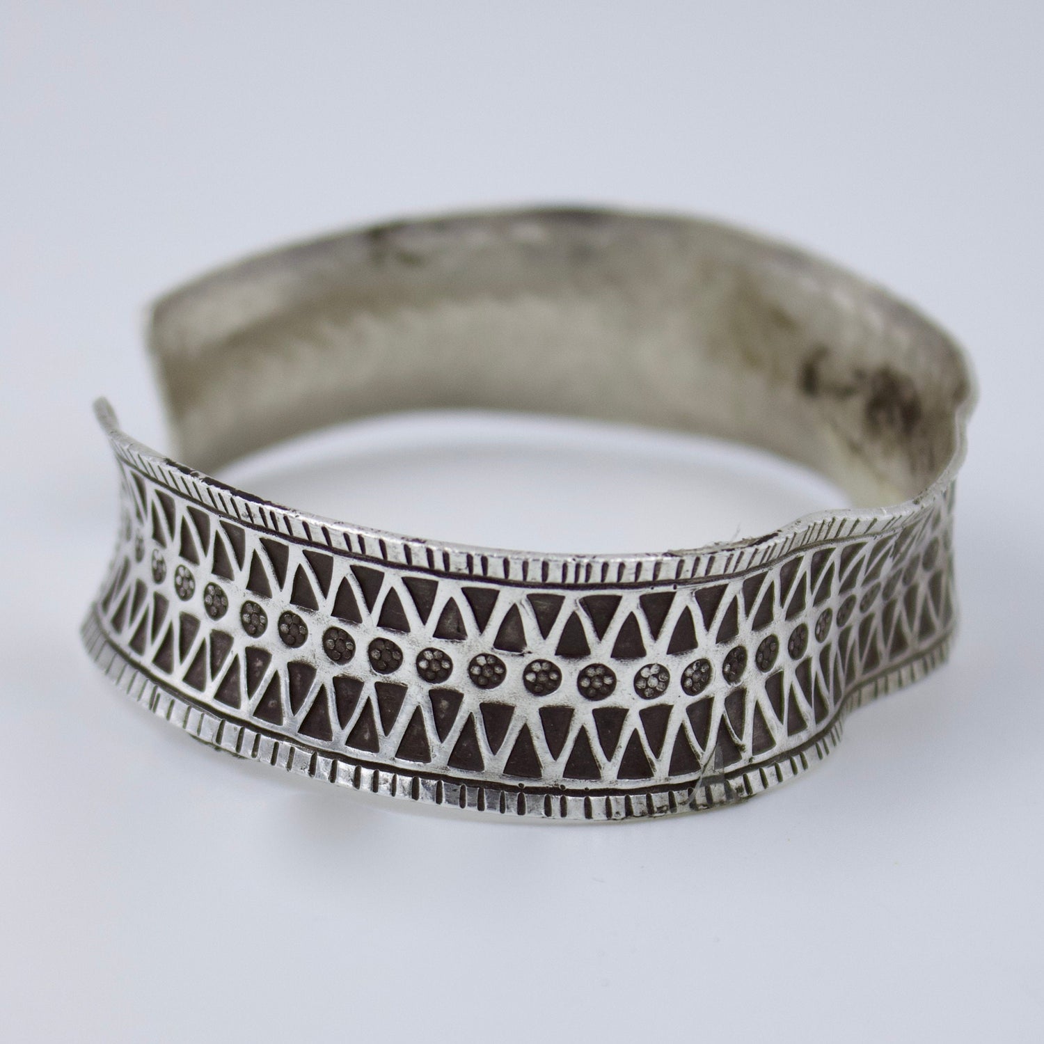 Indonesian Misshapen Hand Etched Statement Cuff Bracelet in Sterling Silver