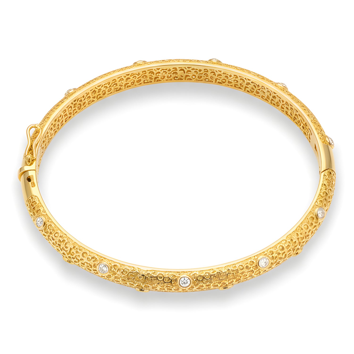 Luxurious 0.74 Ct Natural Diamond Filigree Work Bangle Bracelet 18K Yellow Gold