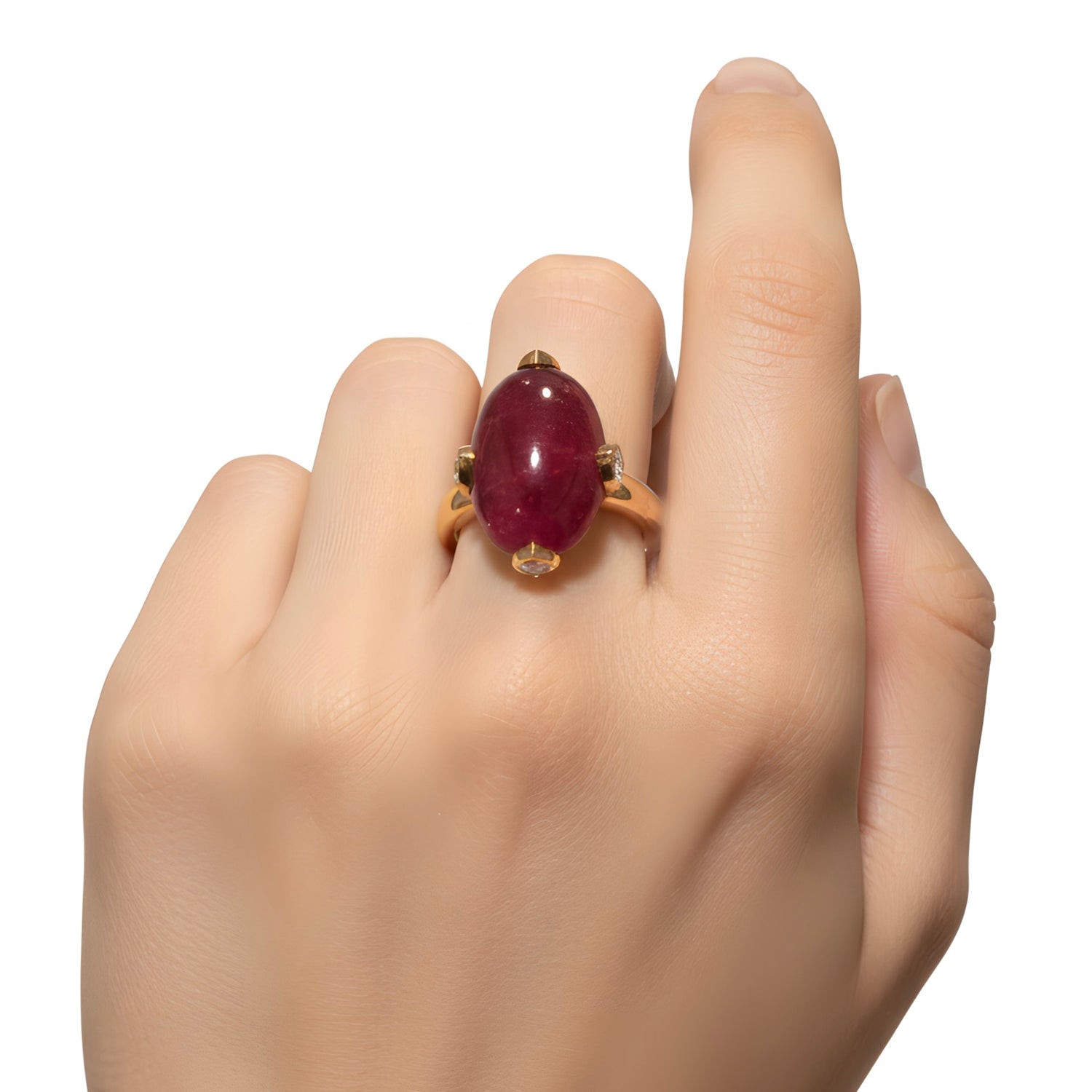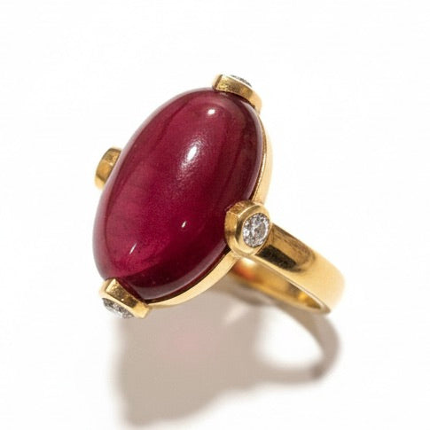 Luxury12.2 Ct Natural Red Spinel & Diamond Cocktail ring in 18KY Gold