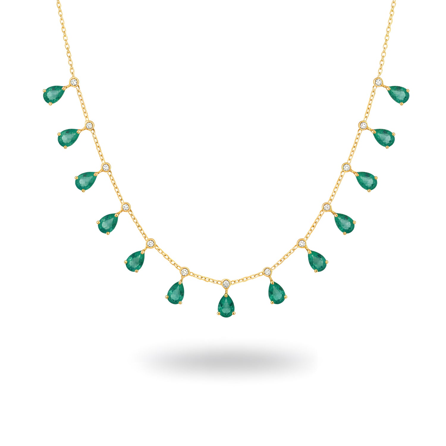 Minimal 5.32 Ct AAA Emerald & Diamond Pear Drop Necklace in 18K Yellow Gold