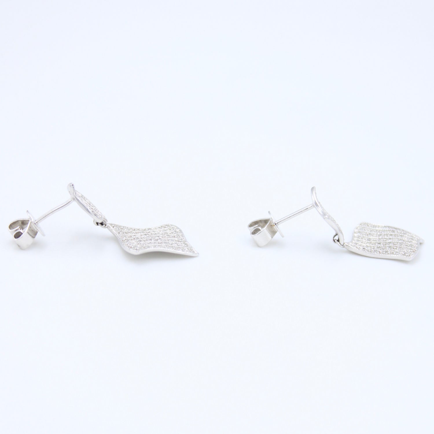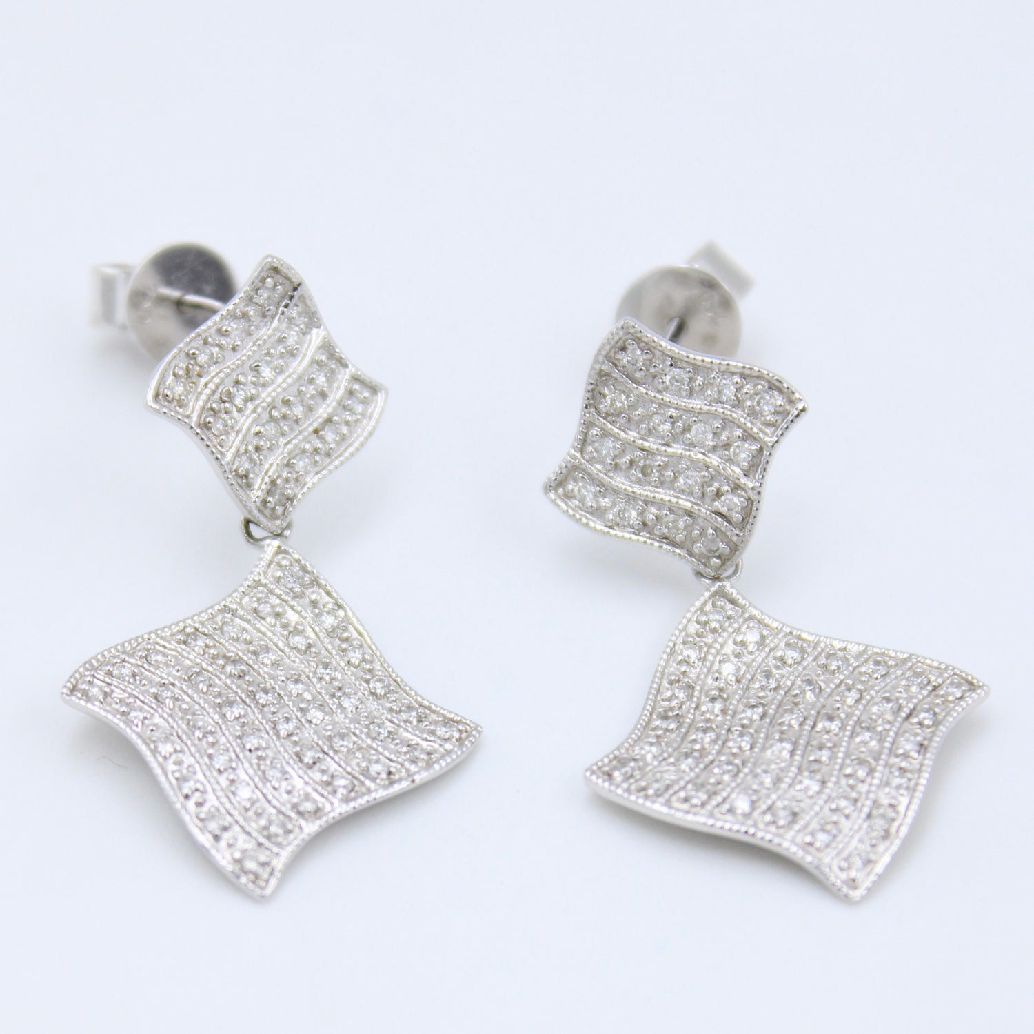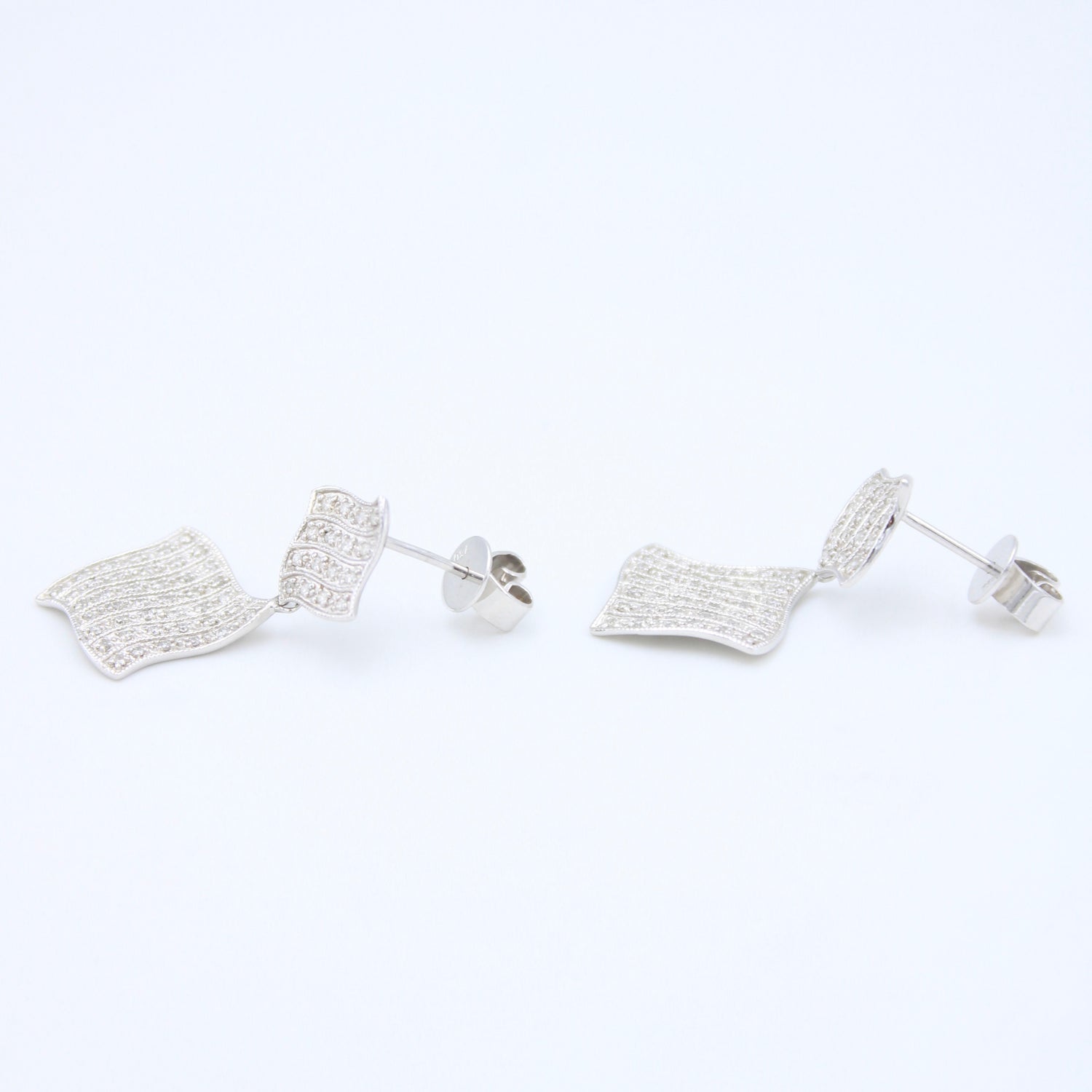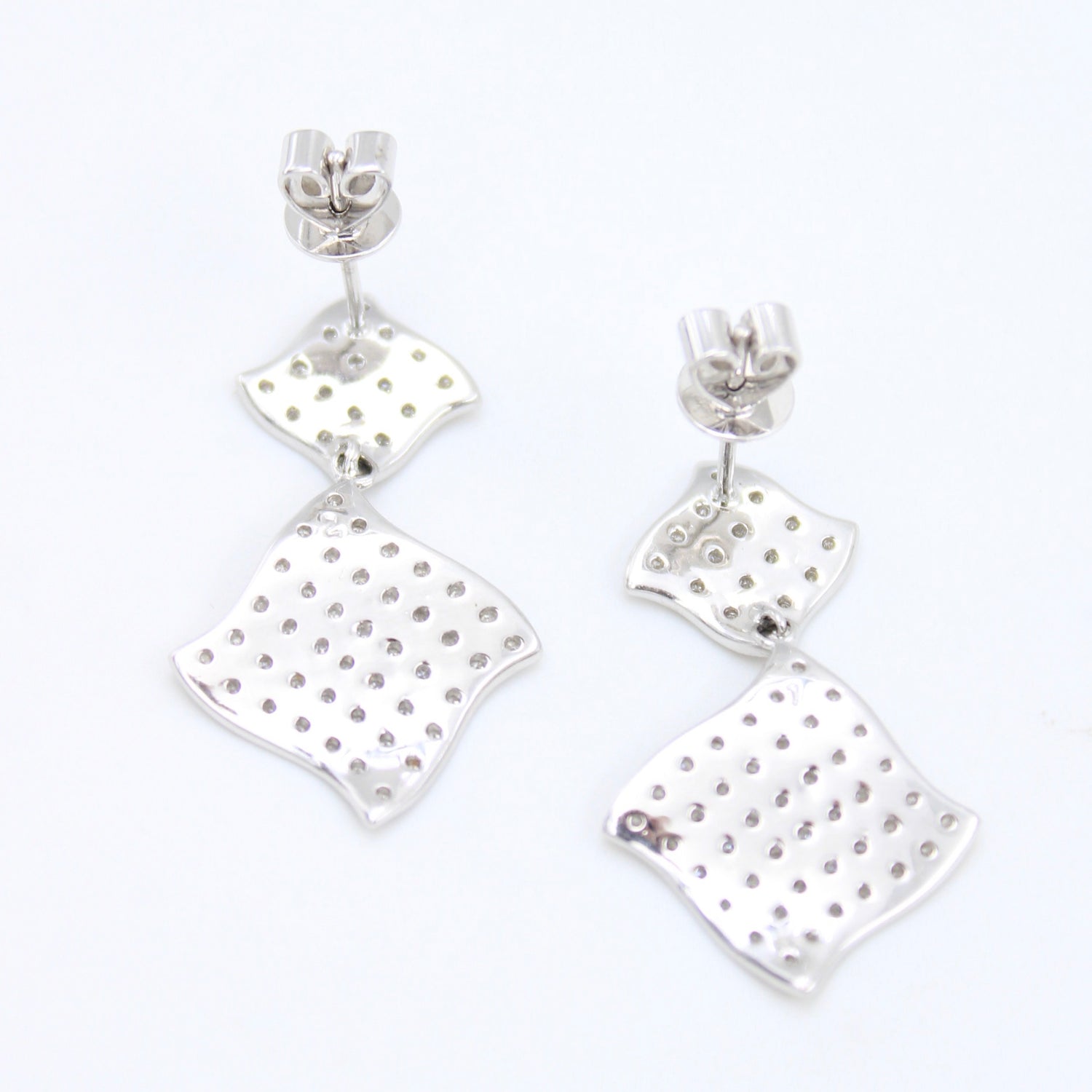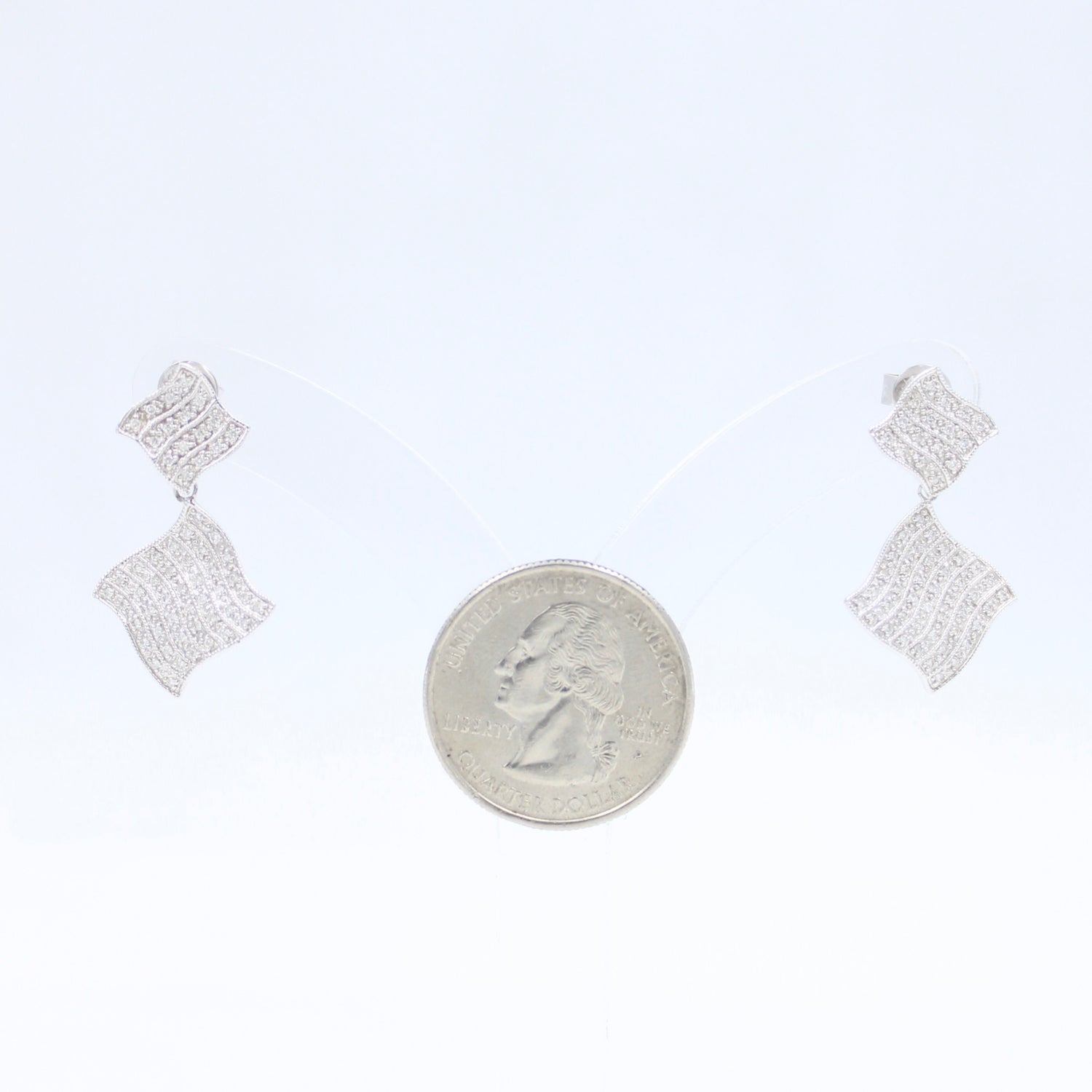 Minimalist 0.42 TCW Natural Diamond Wavy Cluster Drop Earrings in 18K White Gold