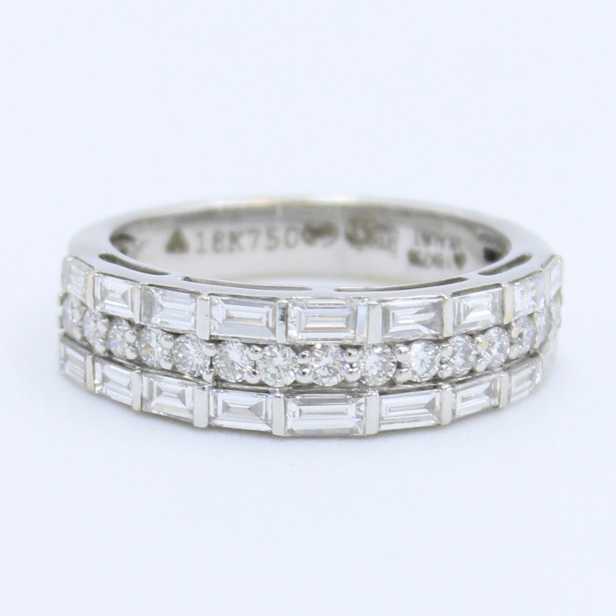 Natural 1.26 Ct E-VVS Baguette Diamond Band Ring in 18K White Gold Size 6.5