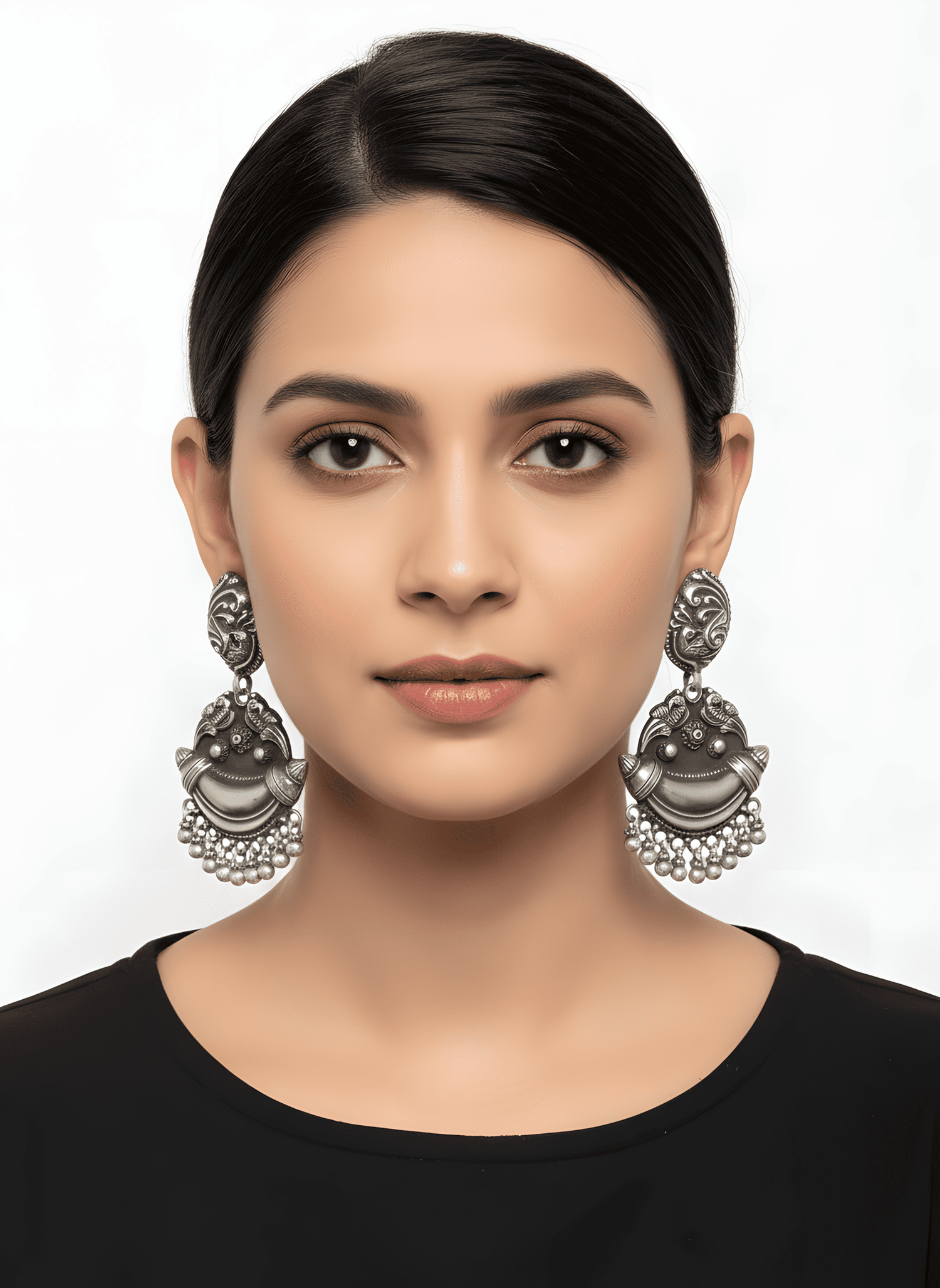 • Design Motif: Intricate Peacock and floral engraving on both the stud and the main drop