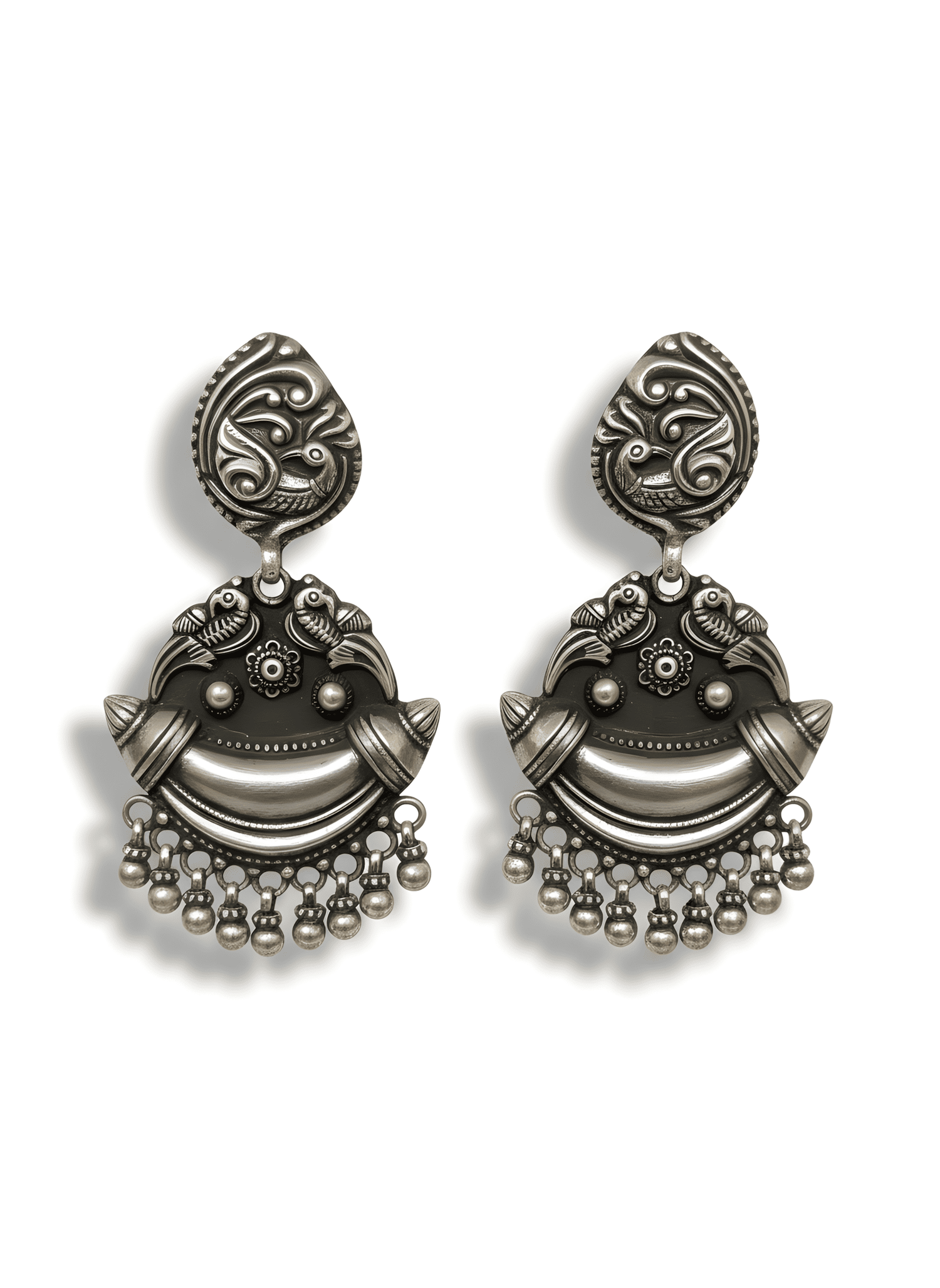 Oxidized 92.5 Sterling Silver Traditional Indian Peacock Drop Earrings