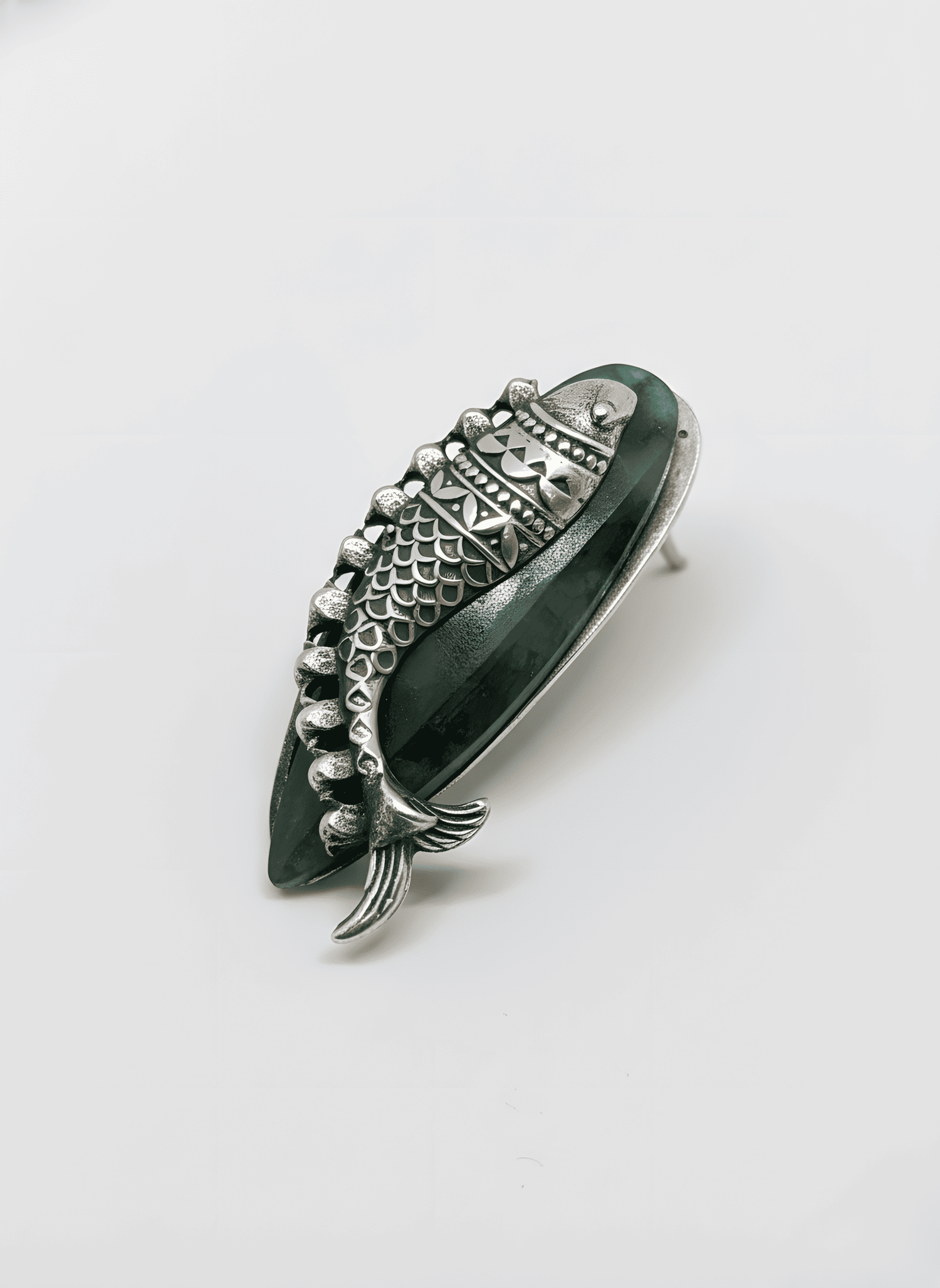• Design: Intricate handcrafted fish motif with detailed scales and tribal engravings