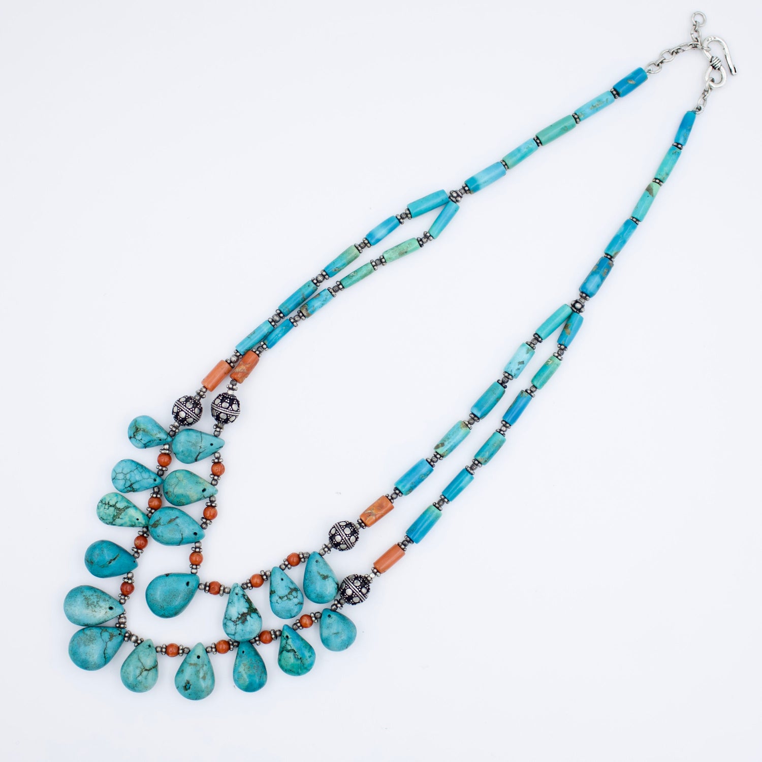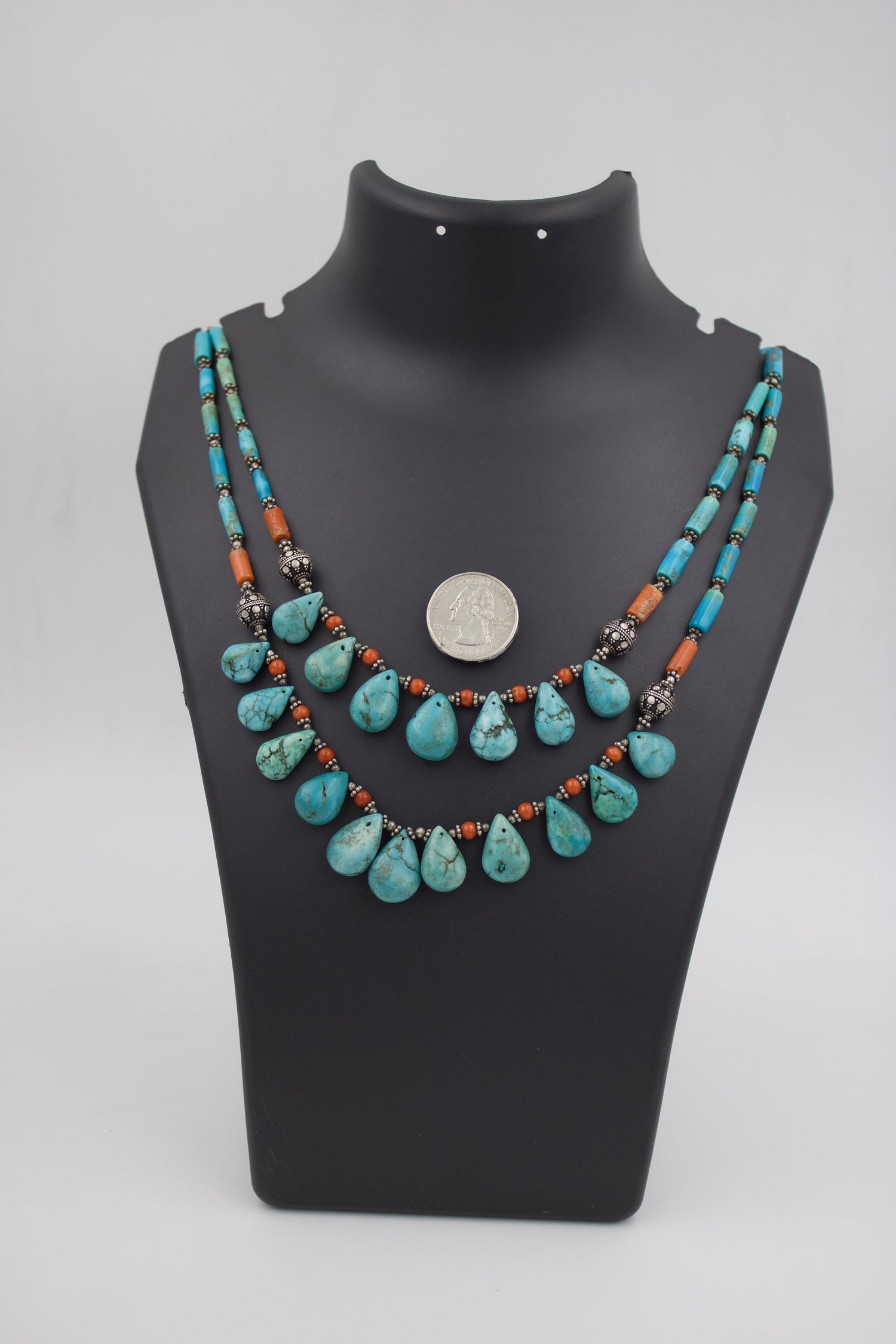 Tibetan Natural Turquoise & Coral 2 Strand Necklace