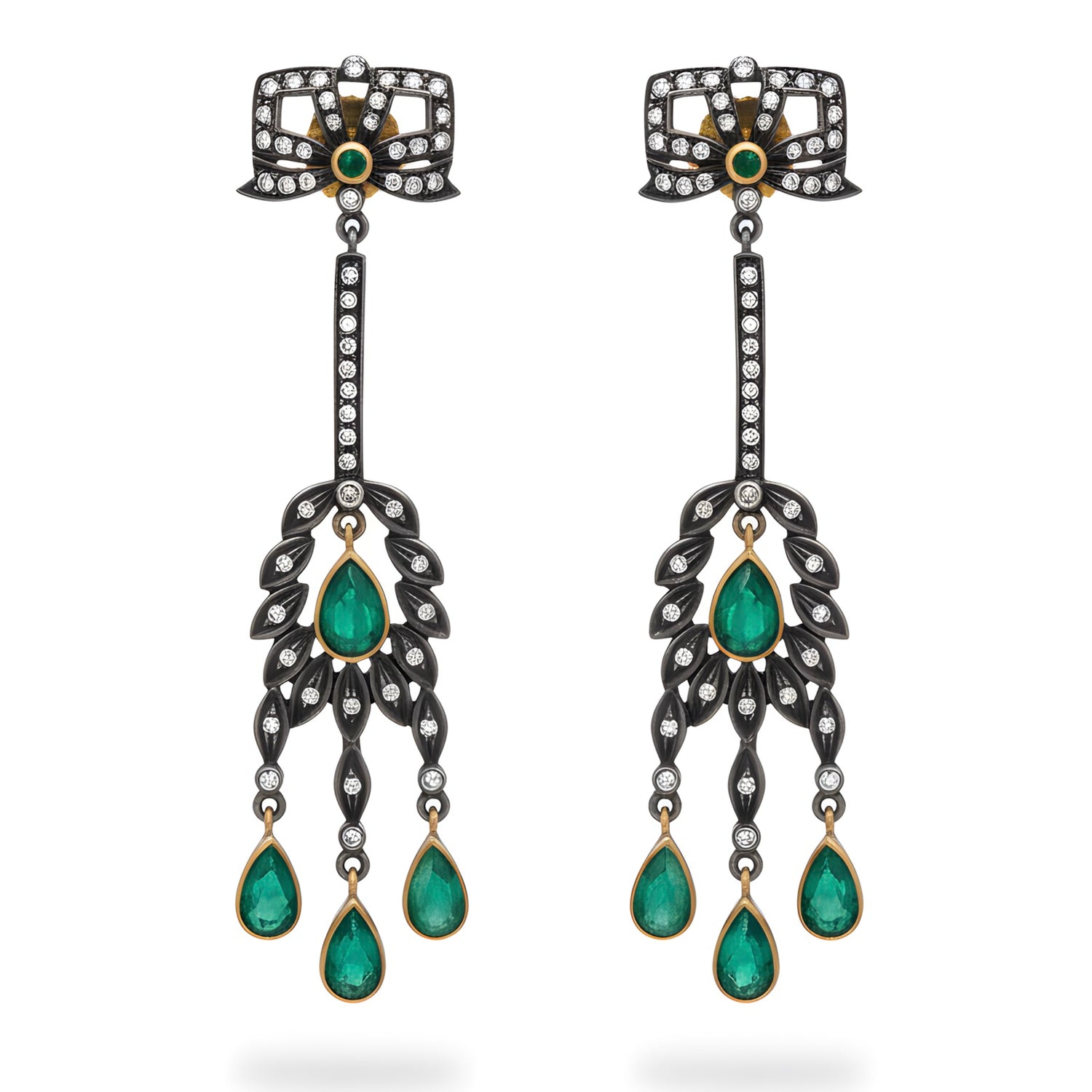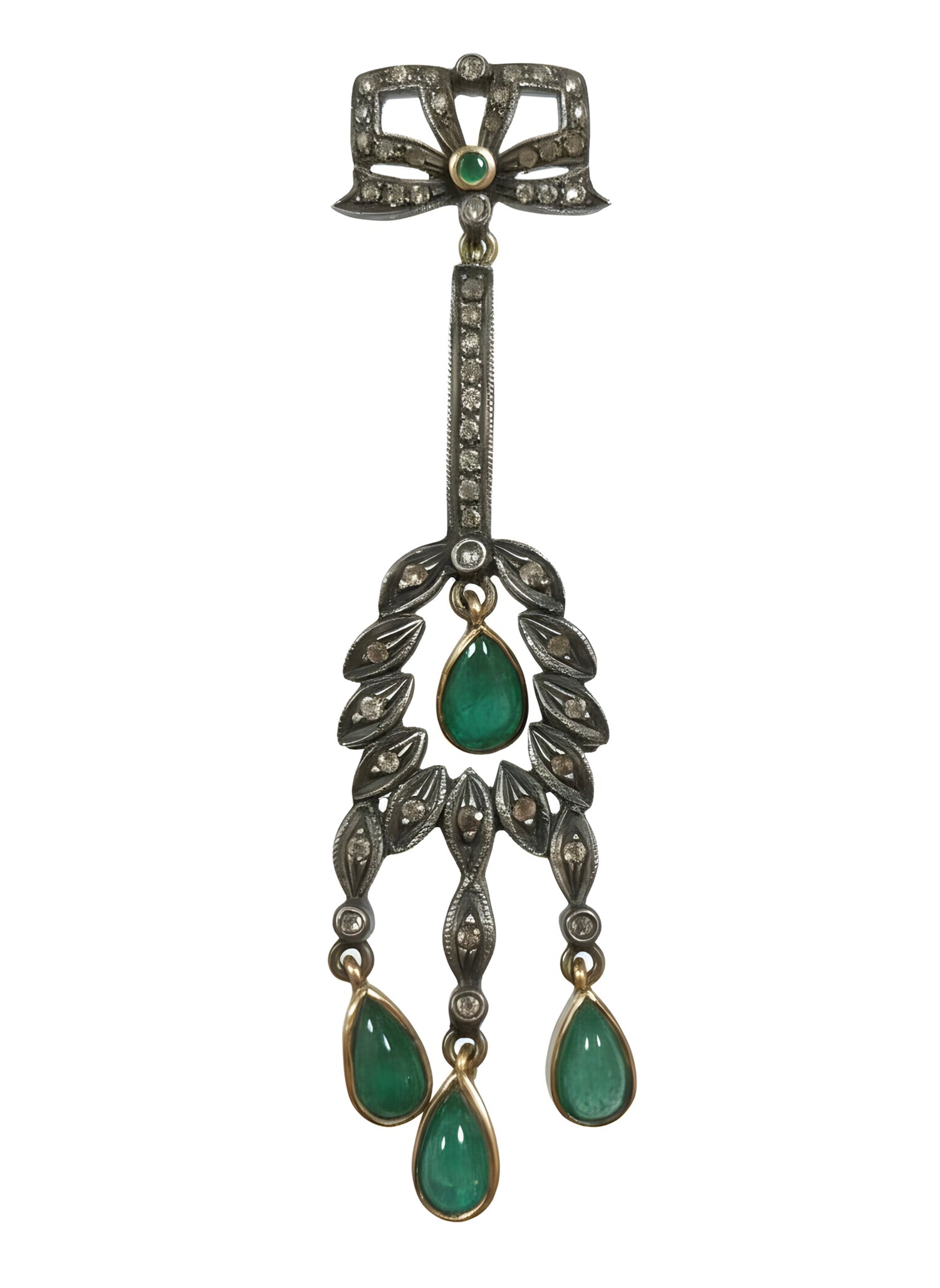 Victorian 2.45 Ct Natural Emerald & Diamond Drop Earrings in 14K Gold & Silver