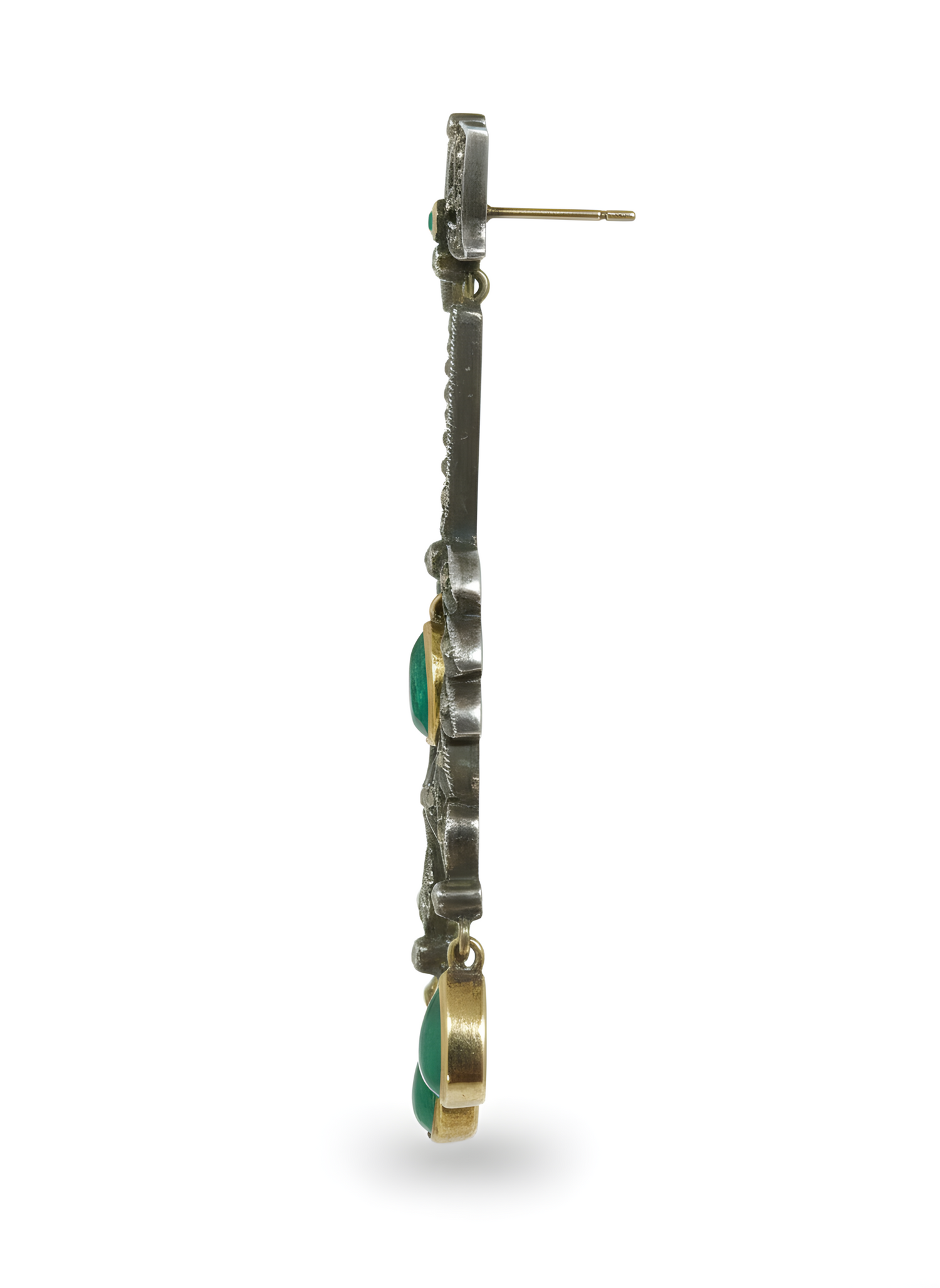 Stones: Single Cut Natural Diamonds (JK-SI) (approx 0.85 ct), Natural Emeralds (Approx 1.6 ct)
