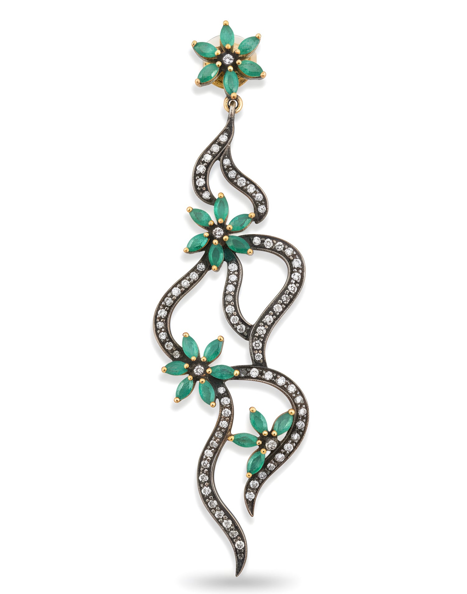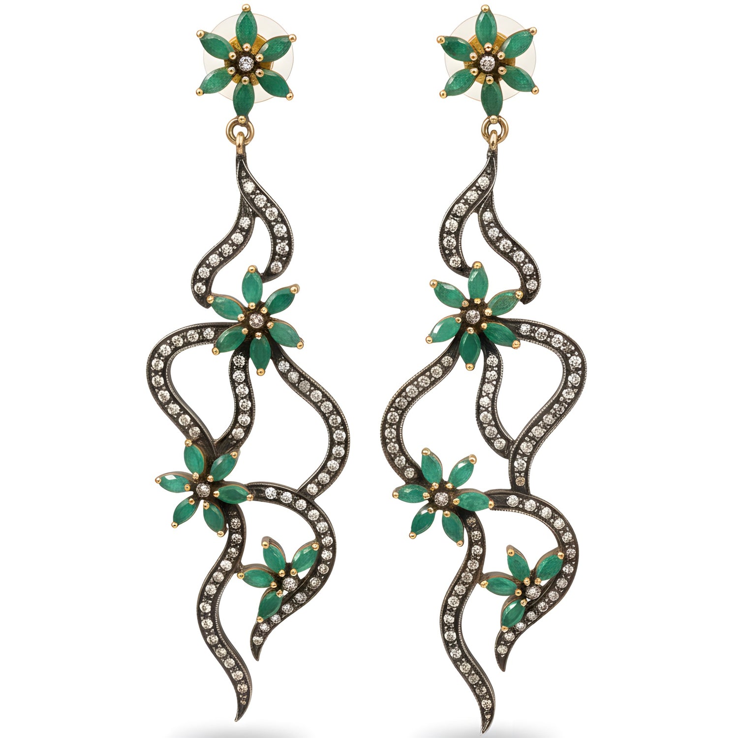 Victorian 7.65 Ct Natural Emerald & Diamond Drop Earrings in 14K Gold & Silver