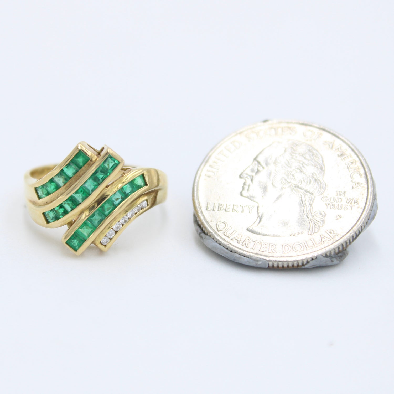 Vintage AAA 1.34 Ct Emerald & Diamond Channel Setting Ring in 18K Gold