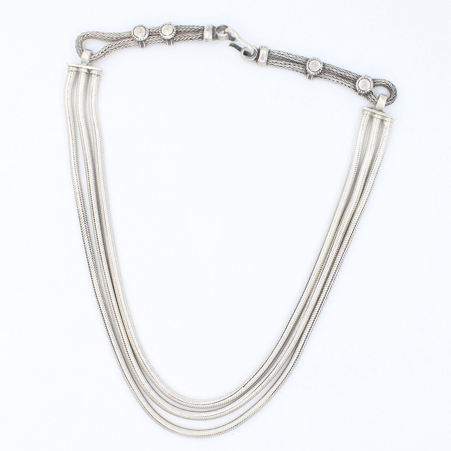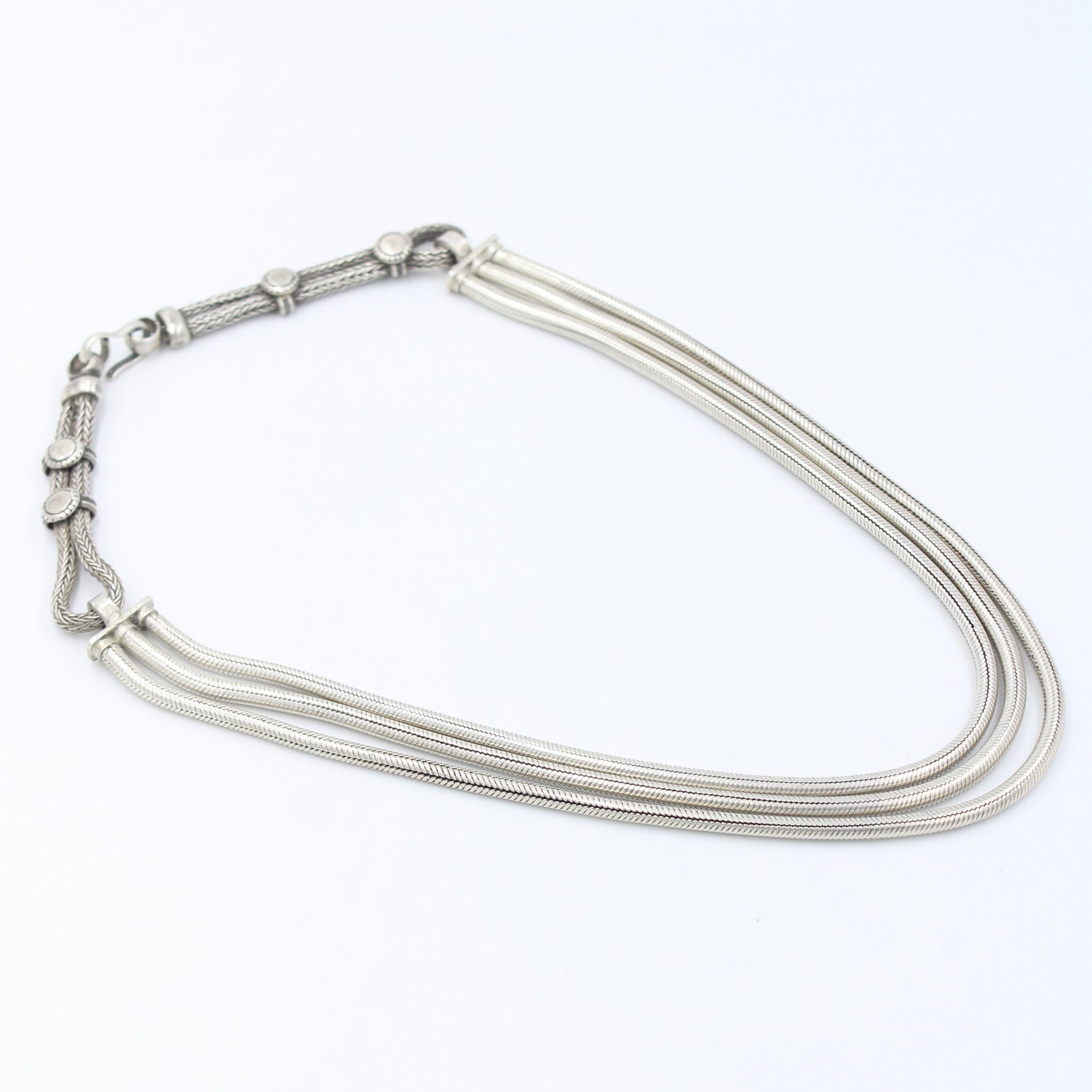 Vintage Handcrafted Tribal 3 Strand Layered Chain Sterling Silver Necklace
