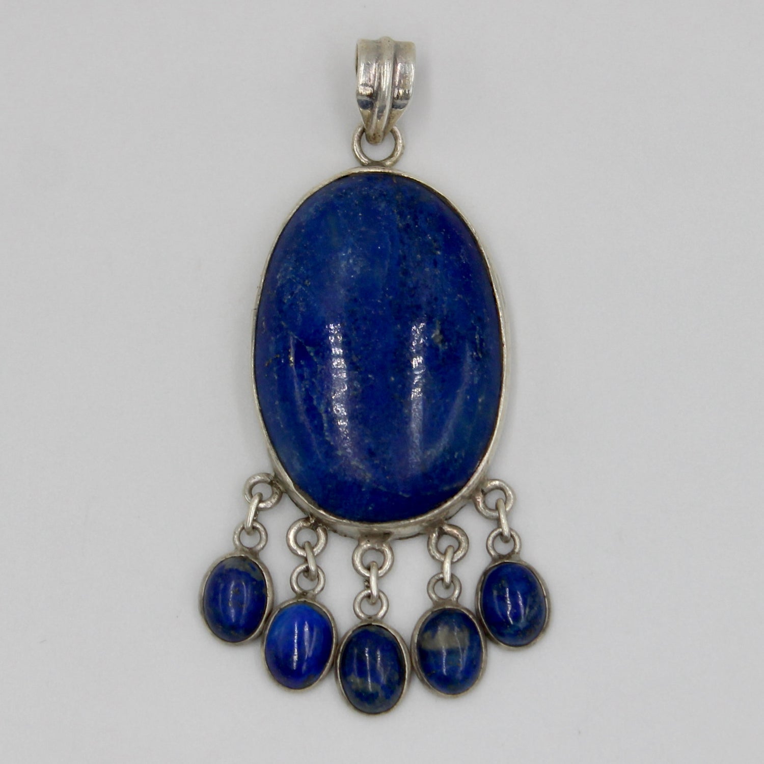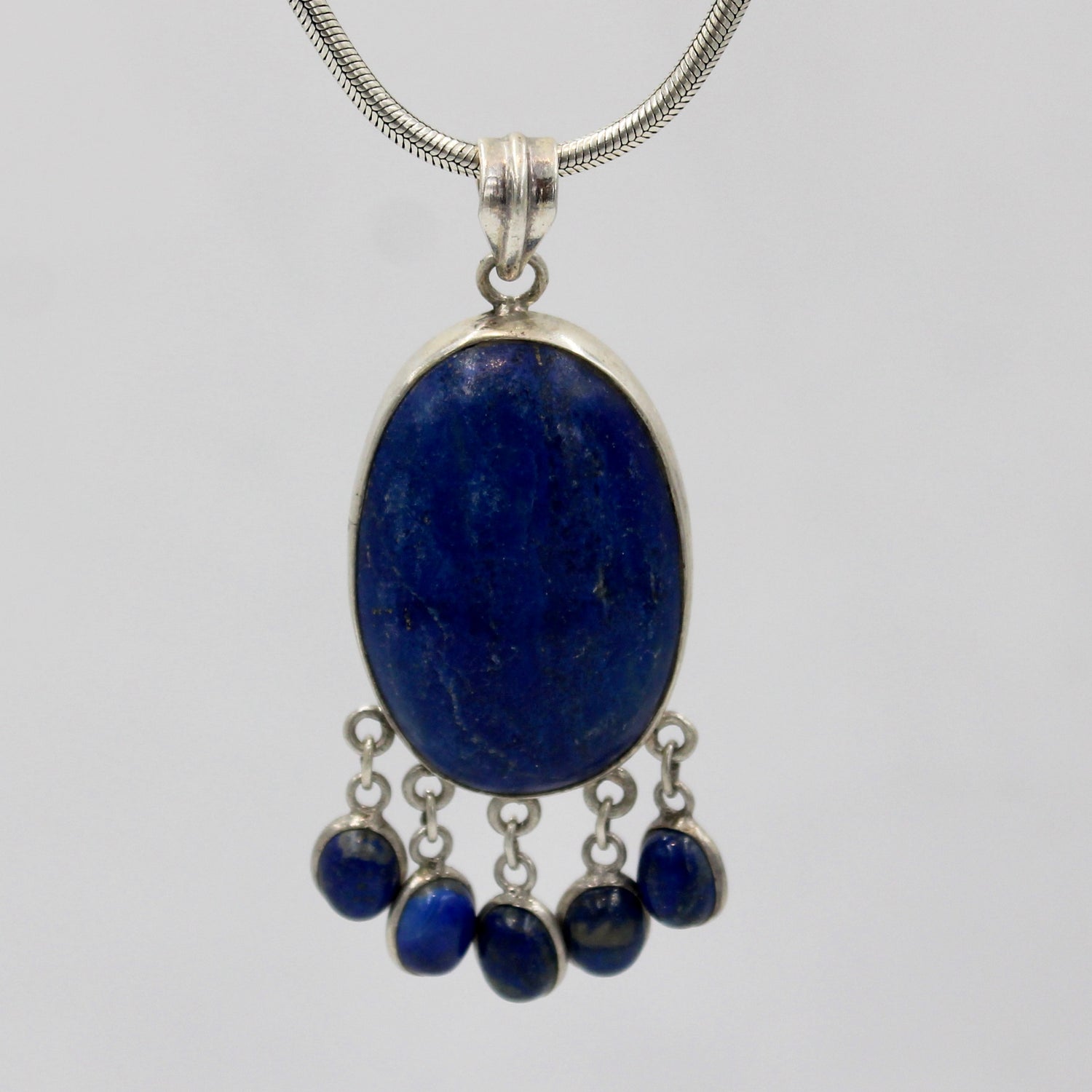 Vintage Handmade Afghan Lapis Drop Pendant in Sterling Silver
