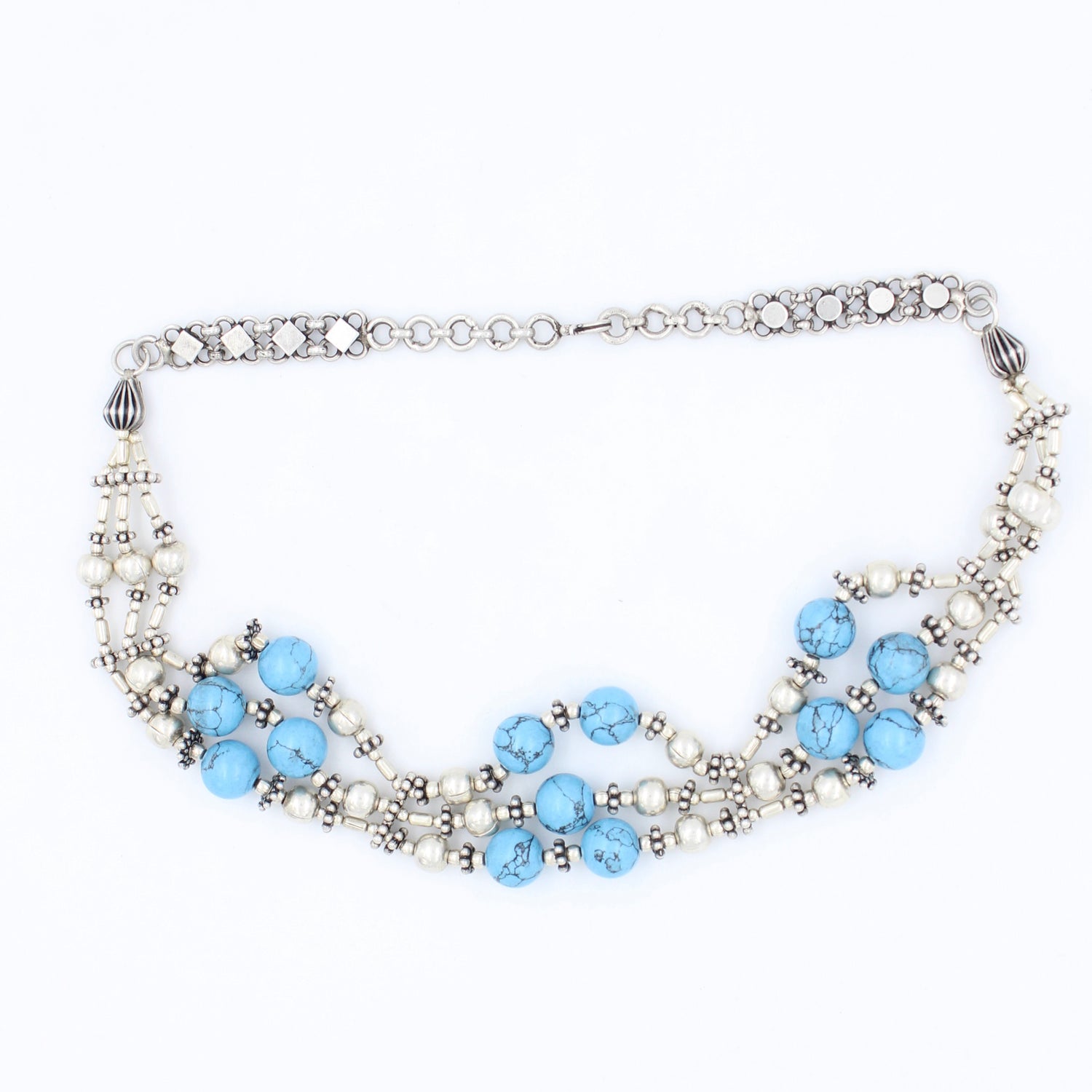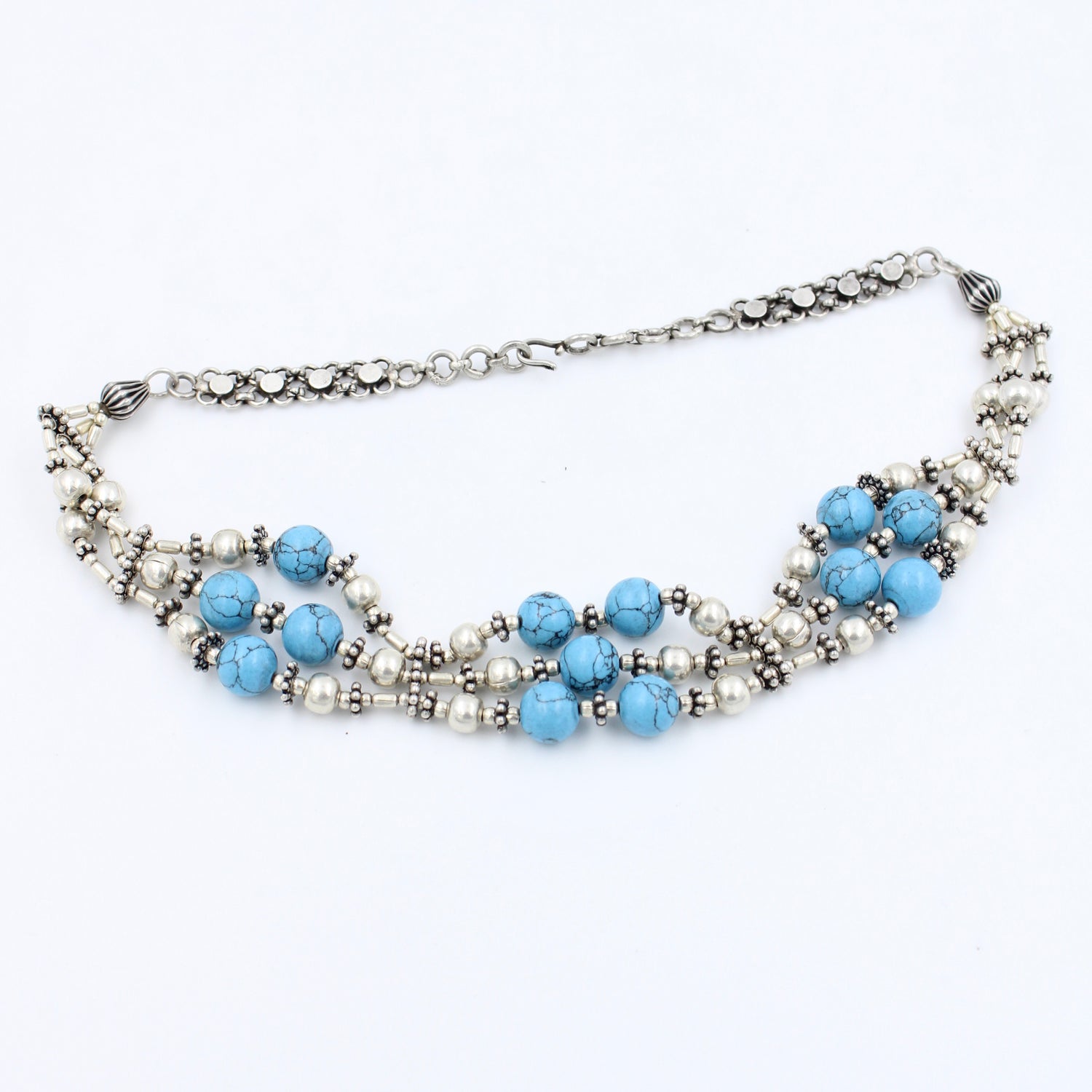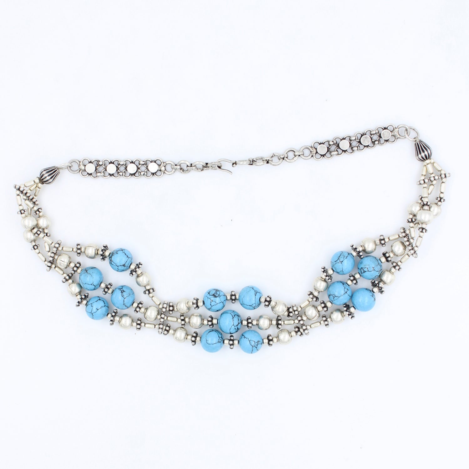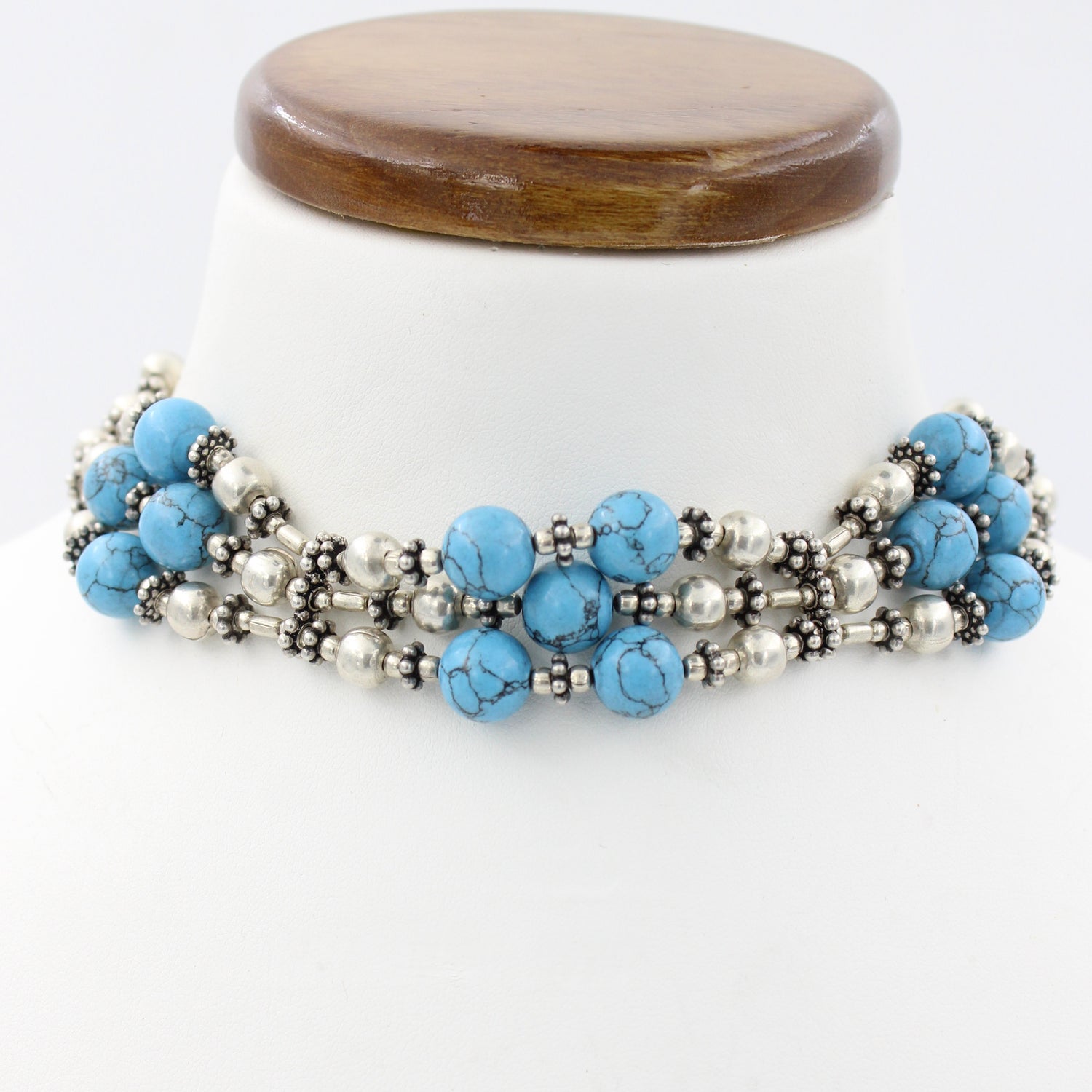 Vintage Handmade Turquoise Choker Necklace in Sterling Silver