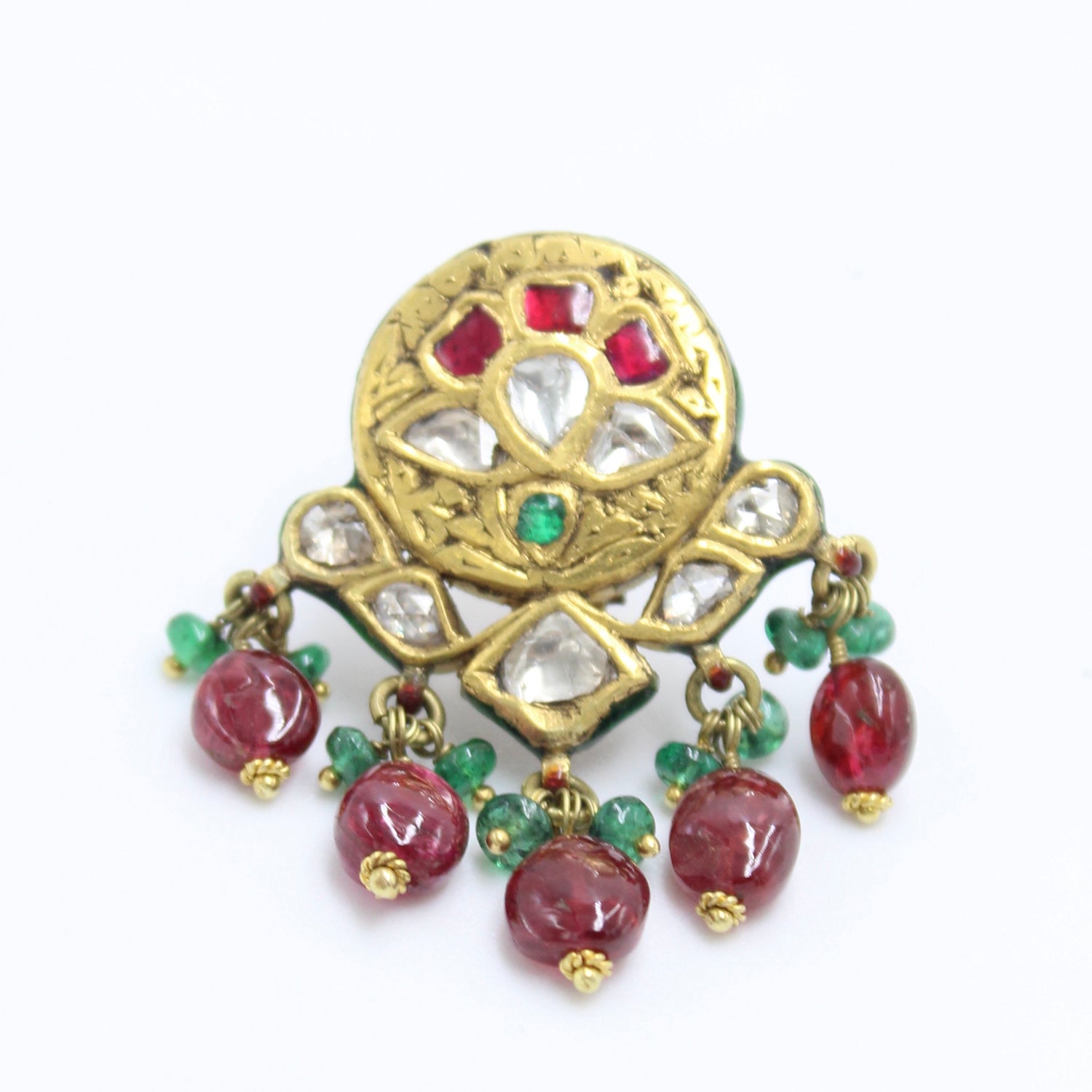 Stones: Spinel (Approx 15 ct), Emerald (Approx 6 ct), Polki / Vilandi Diamond ( Approx 4.5 ct),