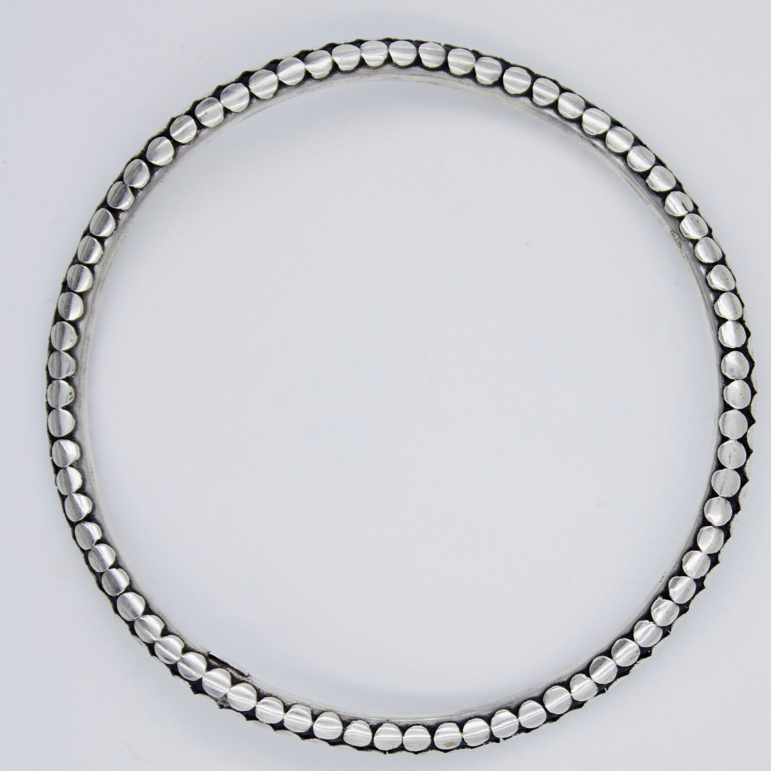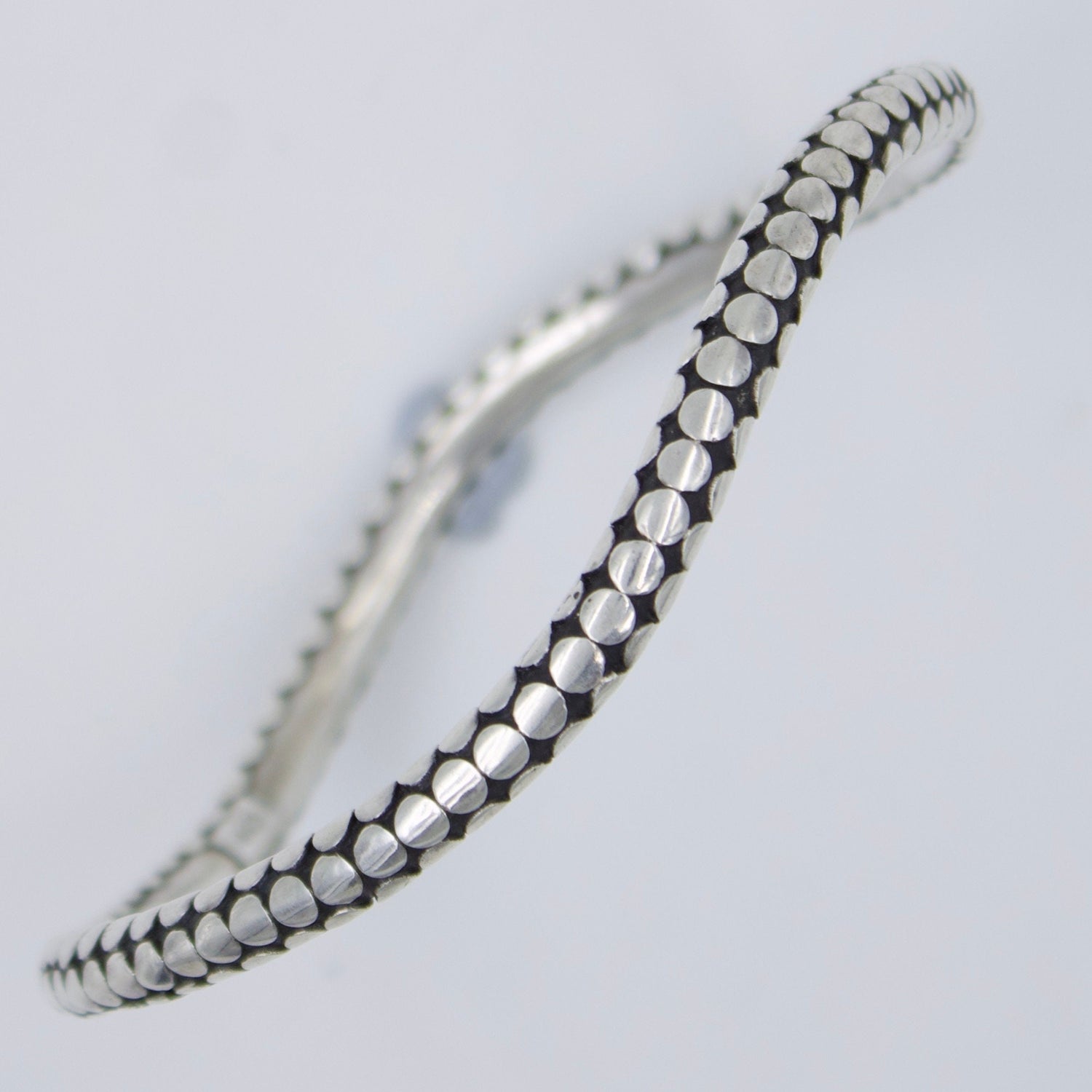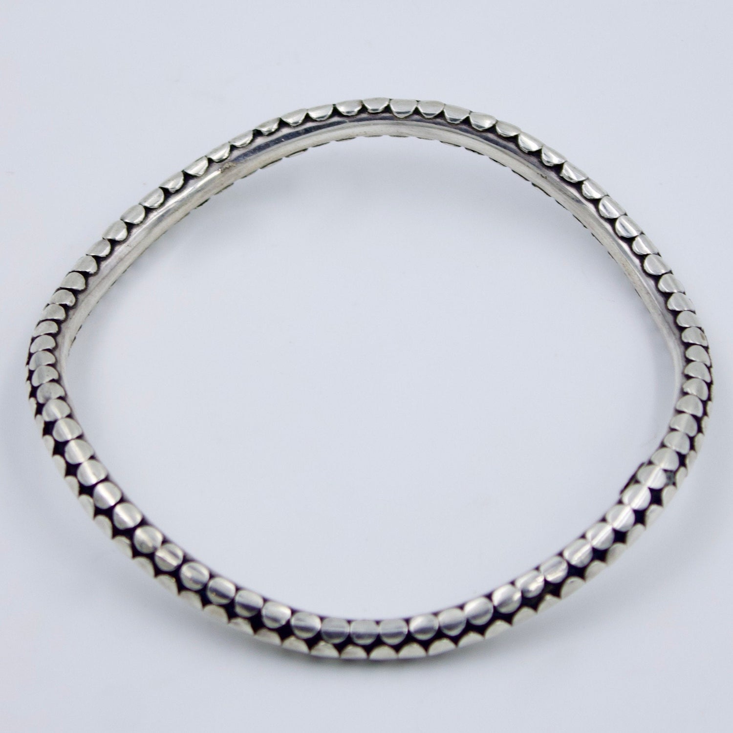 Vintage Indonesian Minimalist Pebble Slip On Bangle in Sterling Silver