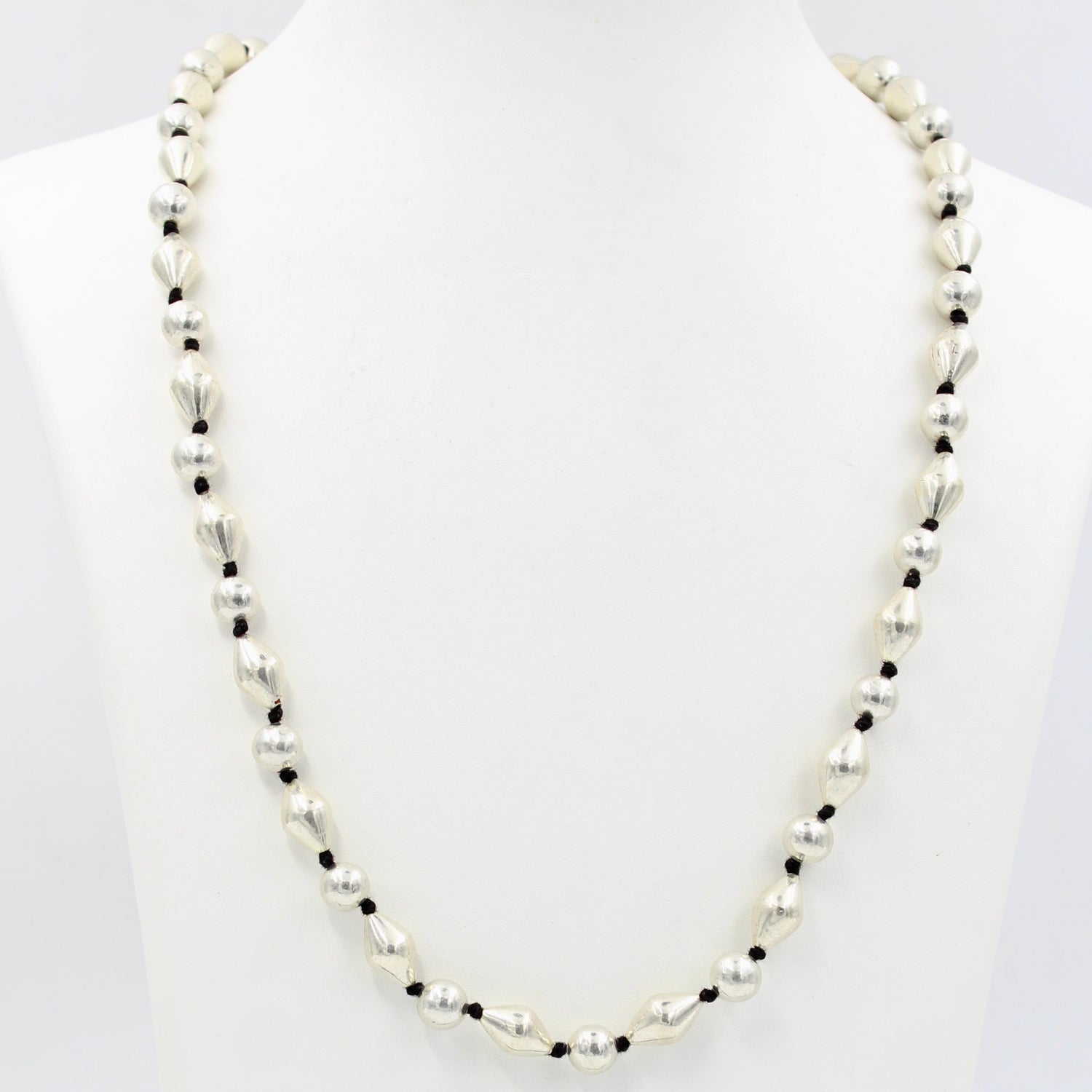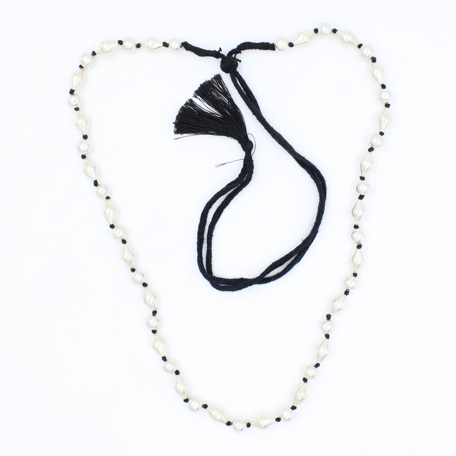 Vintage Long Silver Balls Beaded Necklace with Adjustable Thread